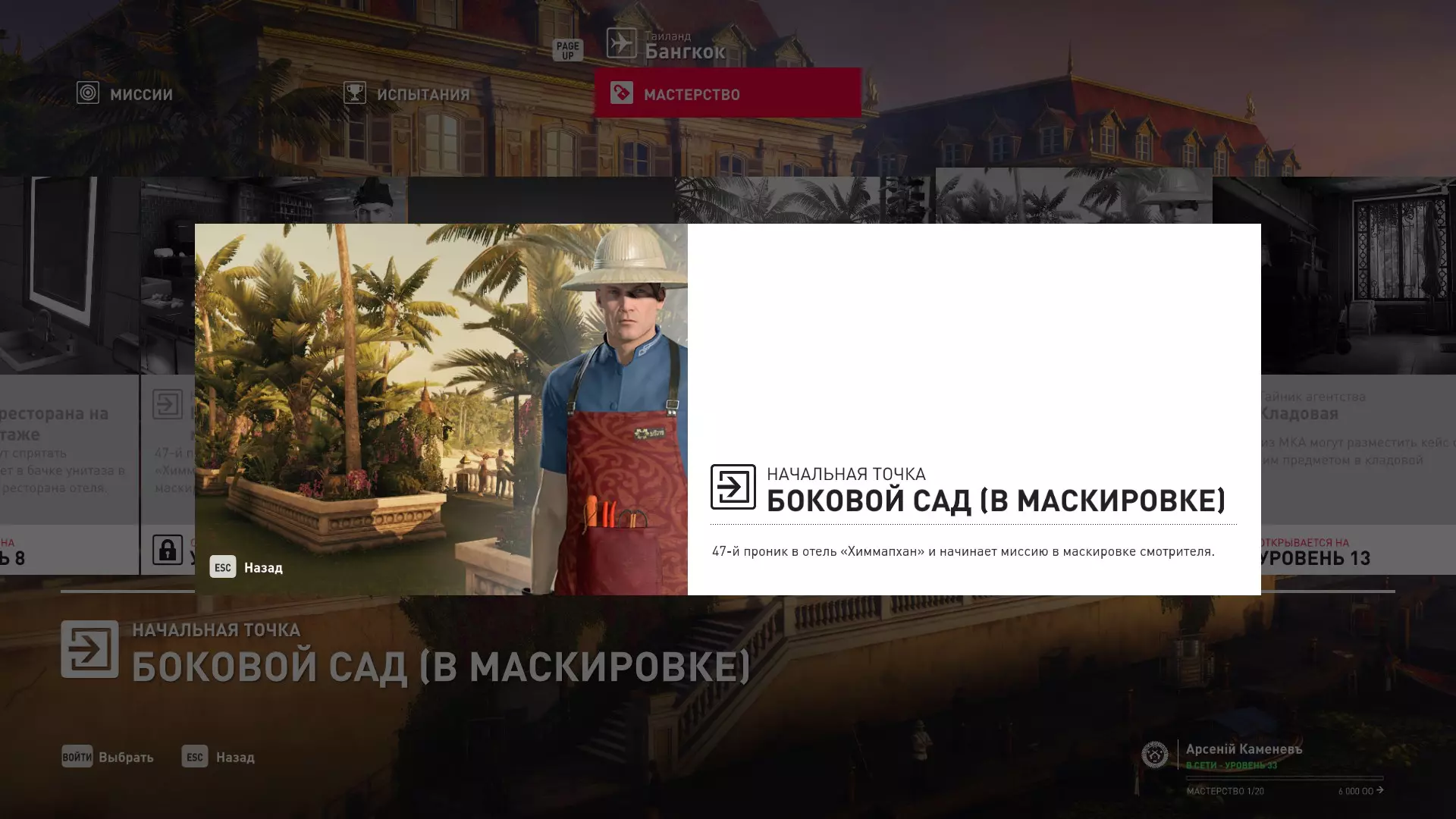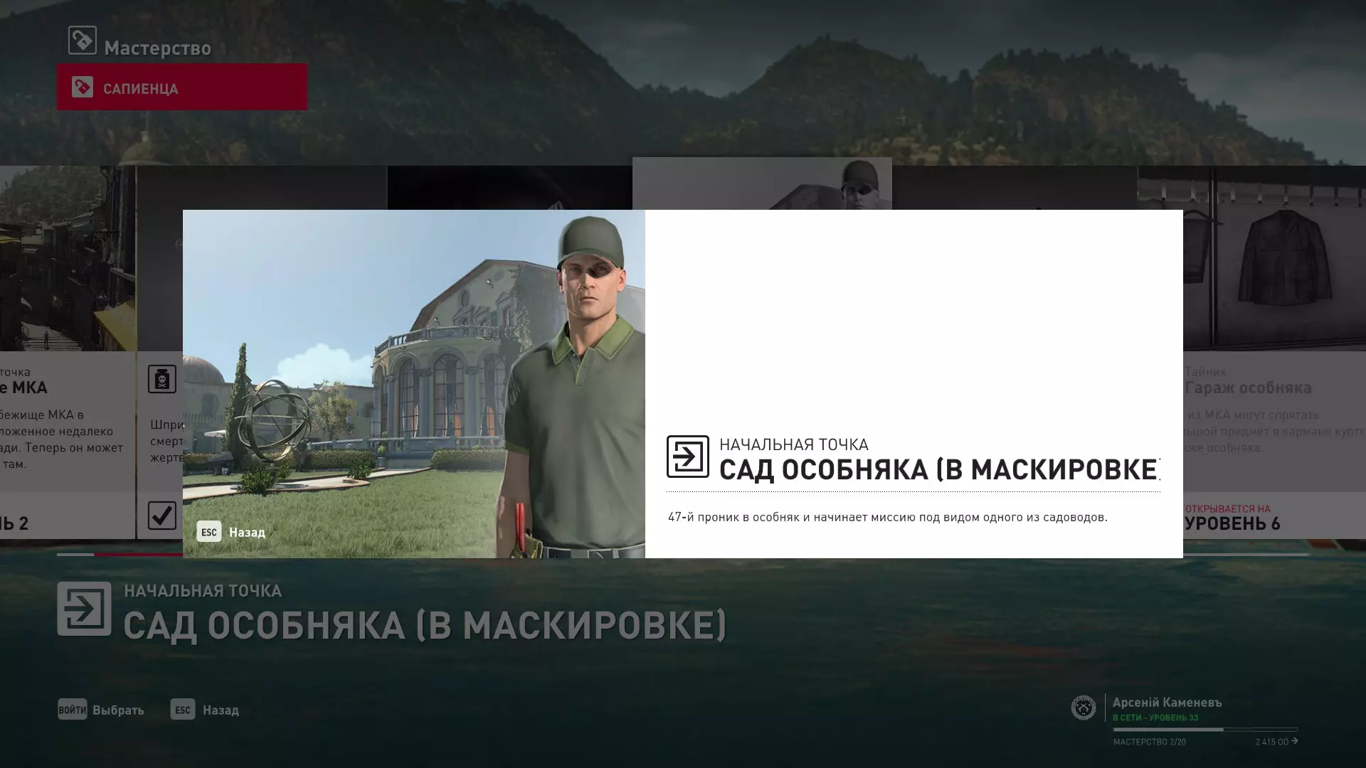 4级熟练度:在庄园花园中以园丁伪装作为起始点