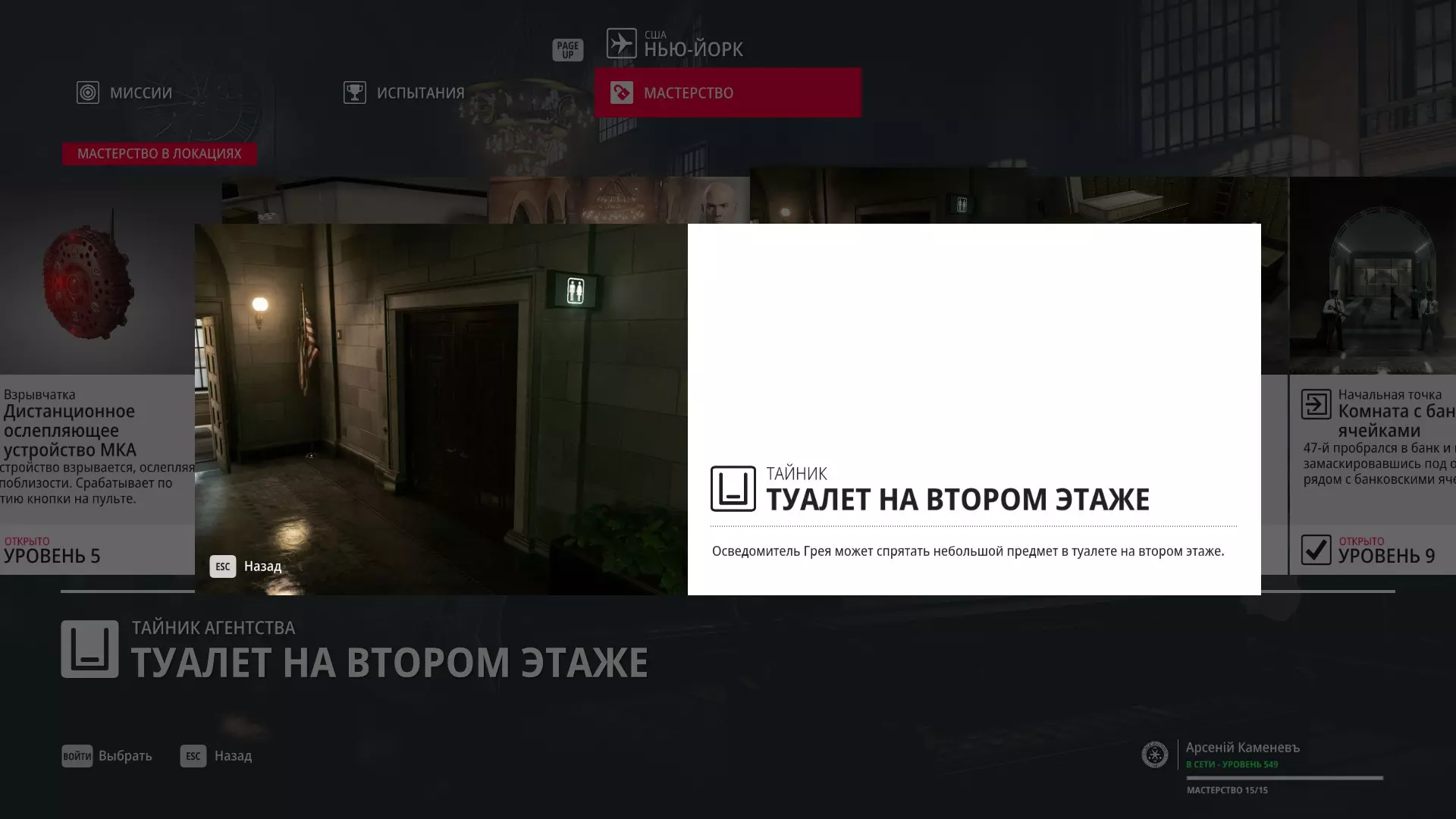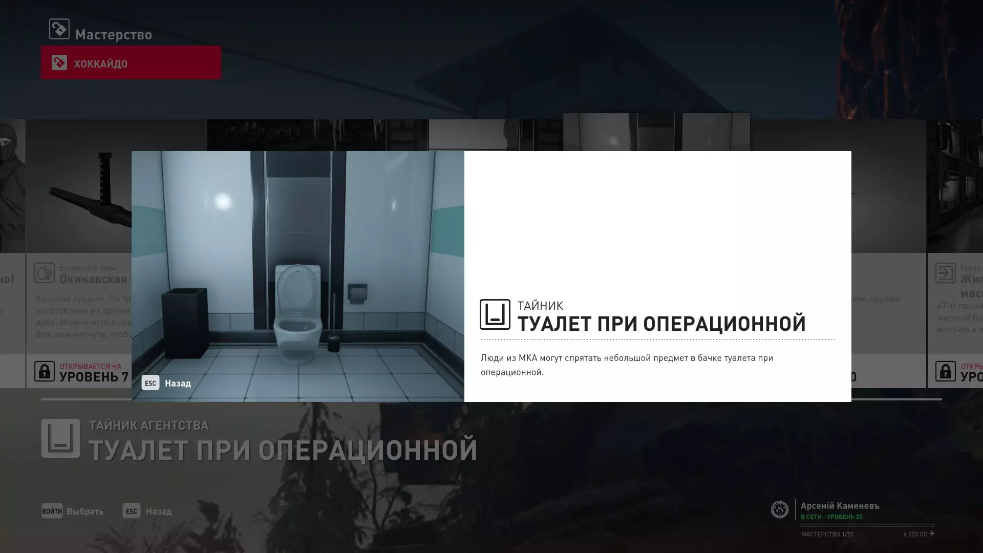 7级熟练度:在审计大厅以手术师伪装为起点,二楼卫生间内有一个小暗格