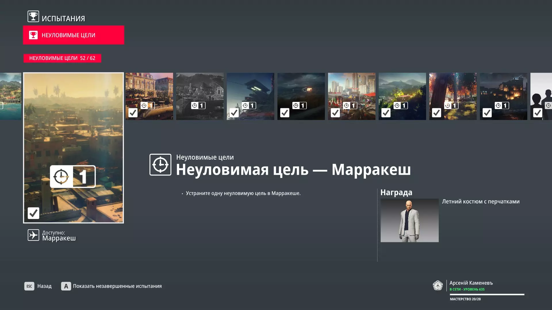 试炼:难以捉摸的目标 - 马拉喀什 描述:在马拉喀什消灭一个难以捉摸的目标 奖励:夏季手套套装