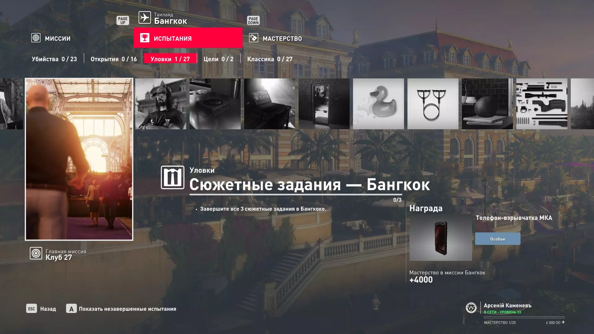 试炼:剧情任务 - 曼谷 描述:完成曼谷的全部3个剧情任务——“酒吧账目”“我的派对”和“干预行动”。 奖励:MKA手机炸弹