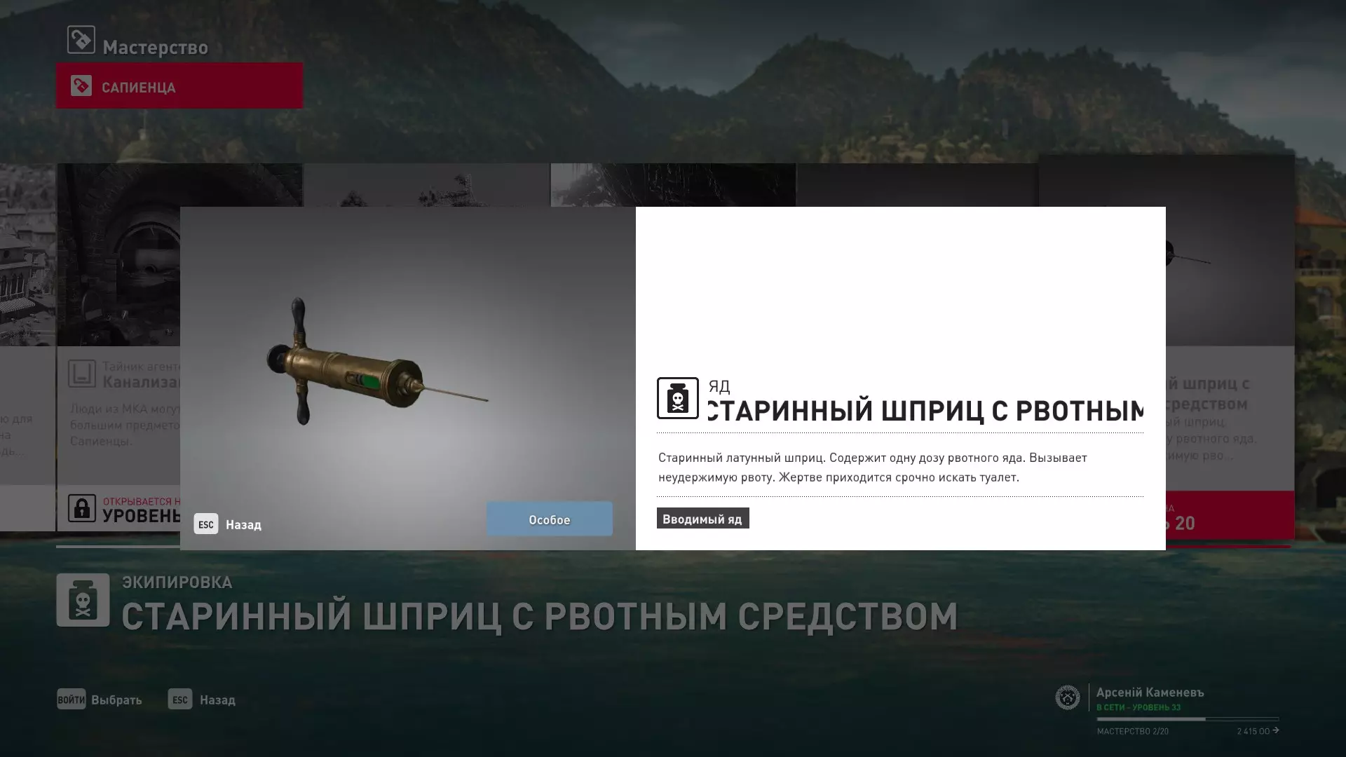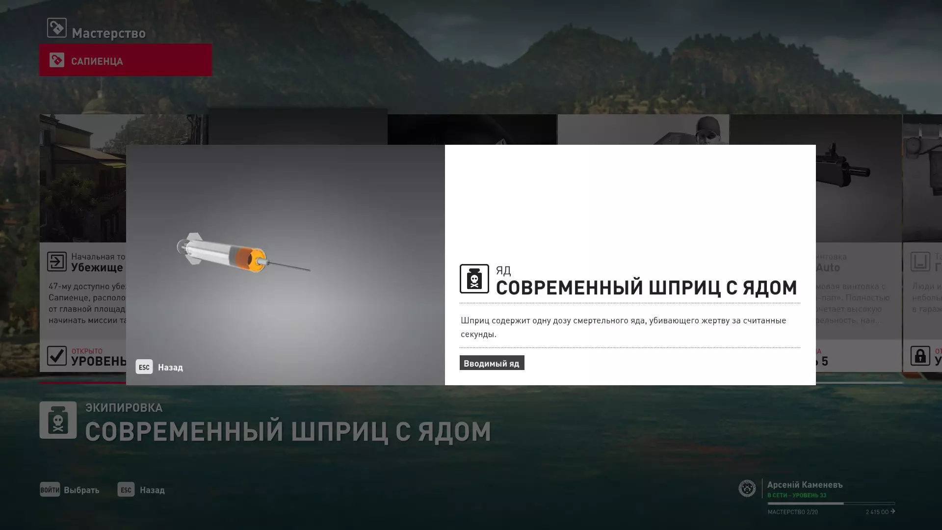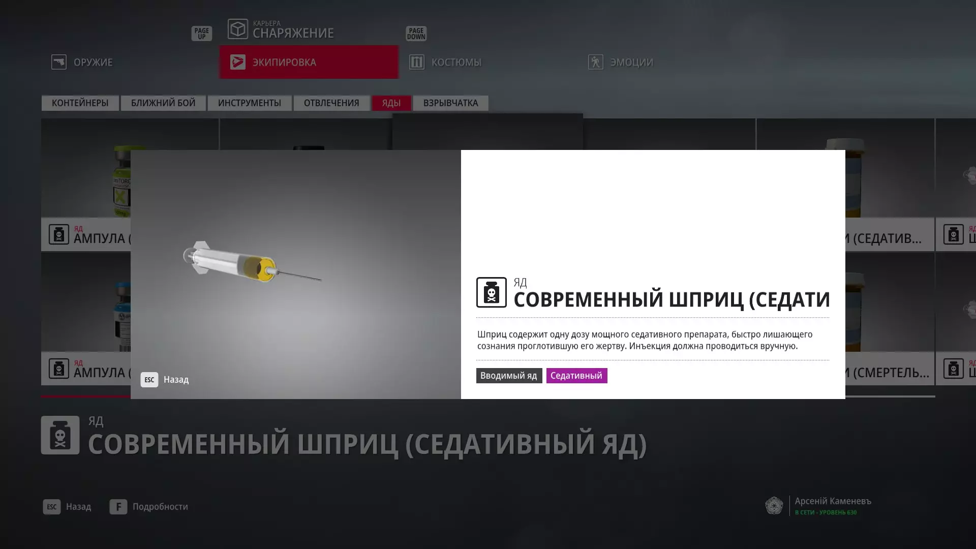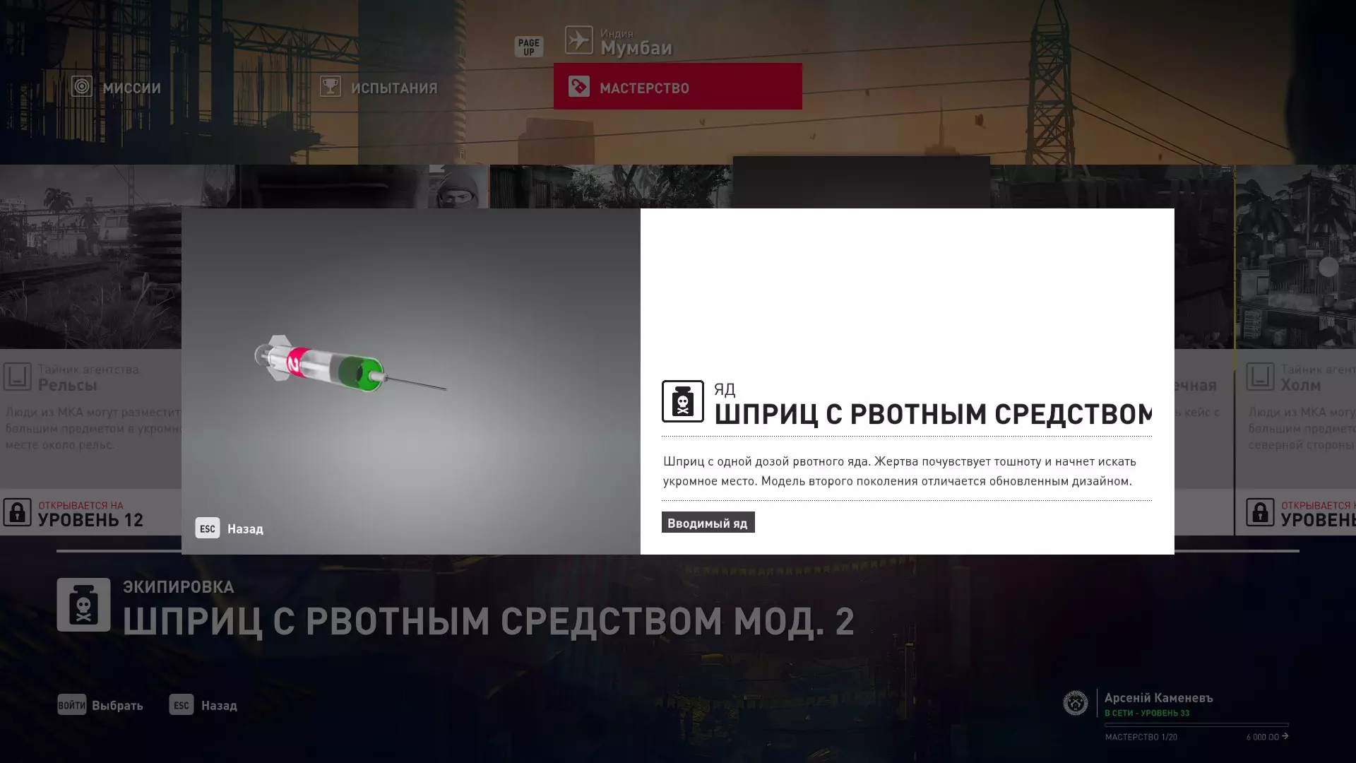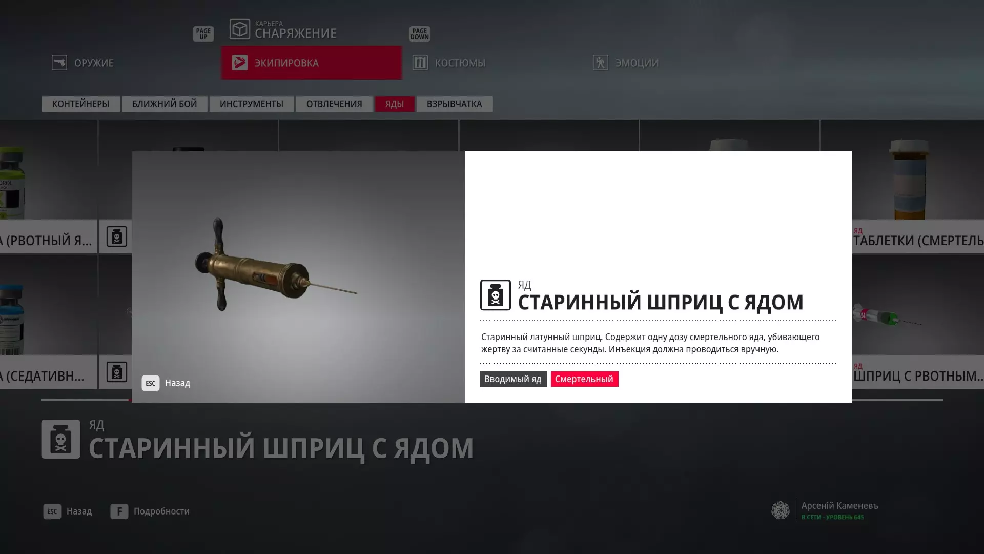 5级熟练度:致命毒注射器mod.2