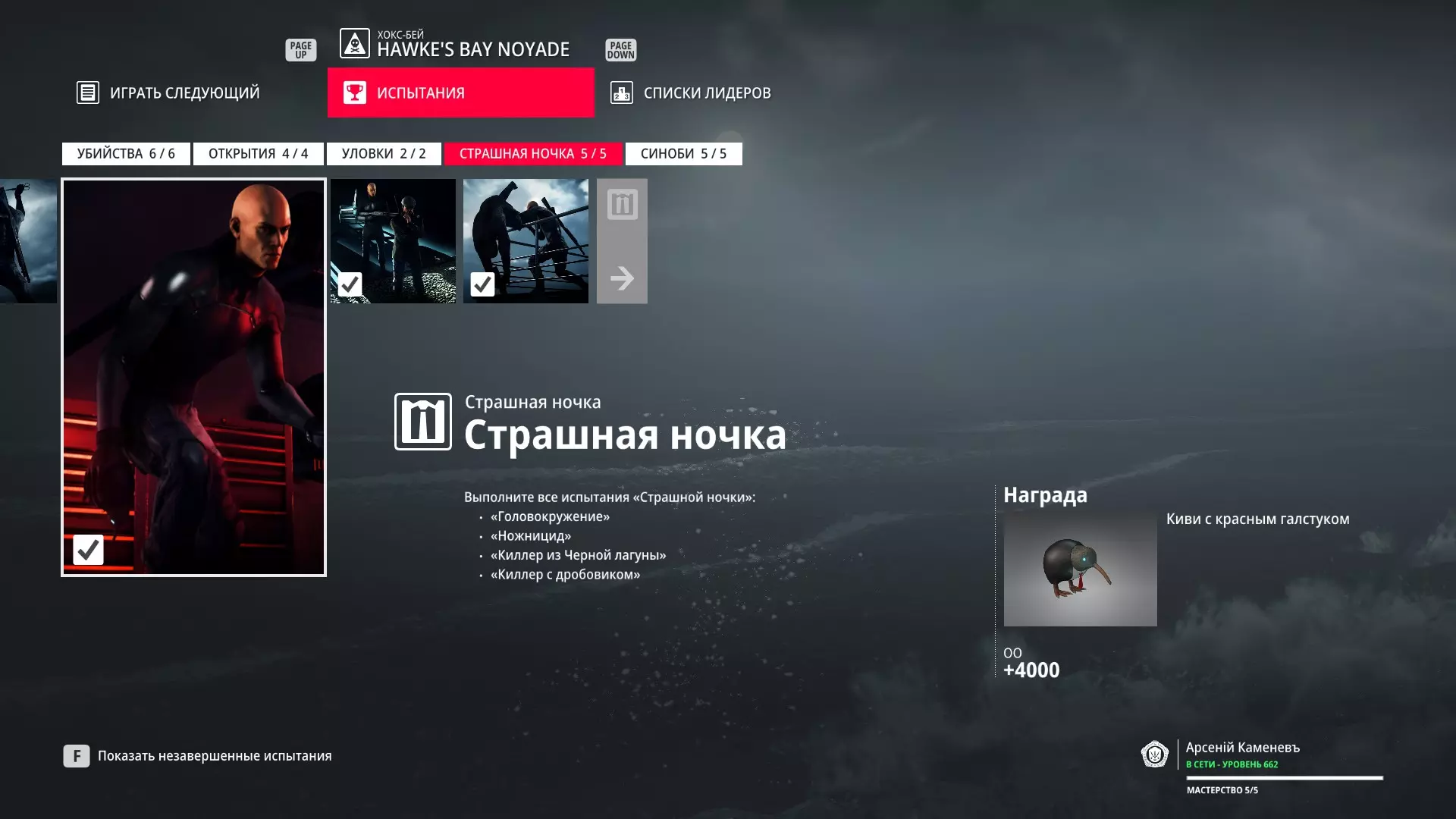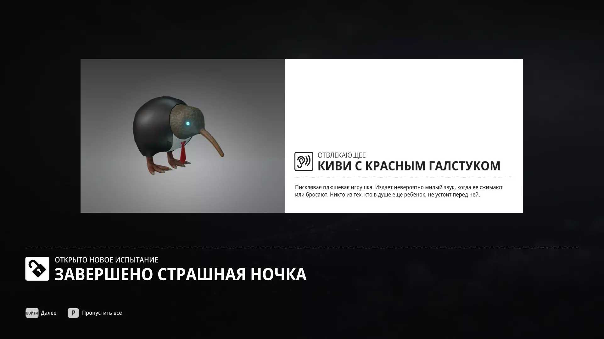 试炼:恐怖之夜 描述:完成所有“恐怖之夜”试炼 奖励:系红领结的几维鸟