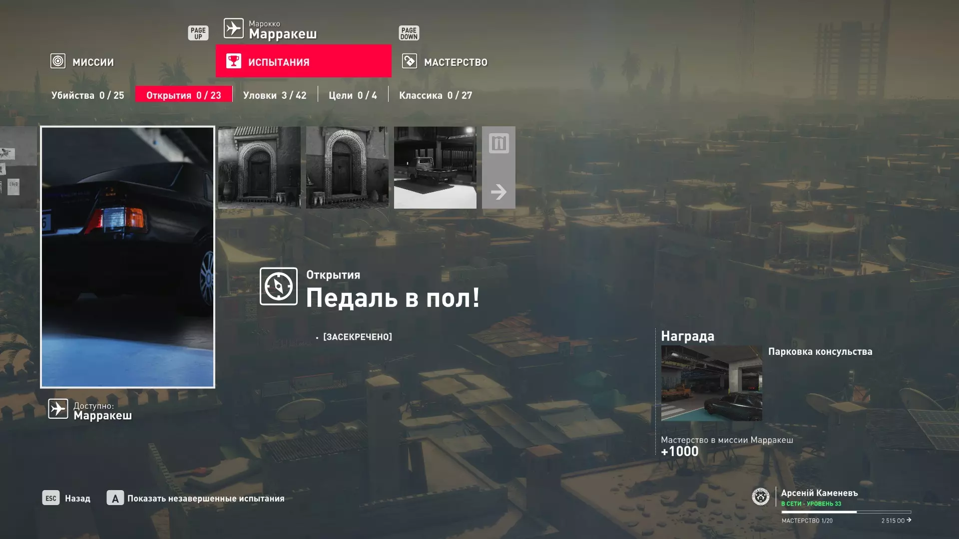 试炼:油门踩到底! 描述:【已加密】 奖励:马拉喀什领事馆停车场的初始位置