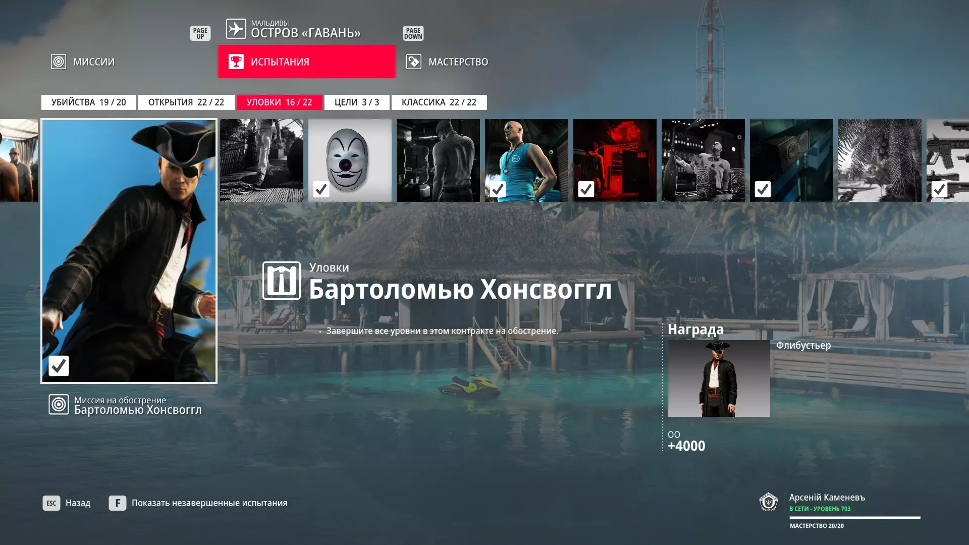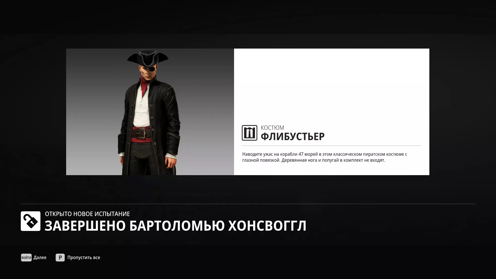 试炼:巴塞洛缪·亨斯沃格 描述:完成此强化合约中的所有关卡 奖励:海盗(服装)