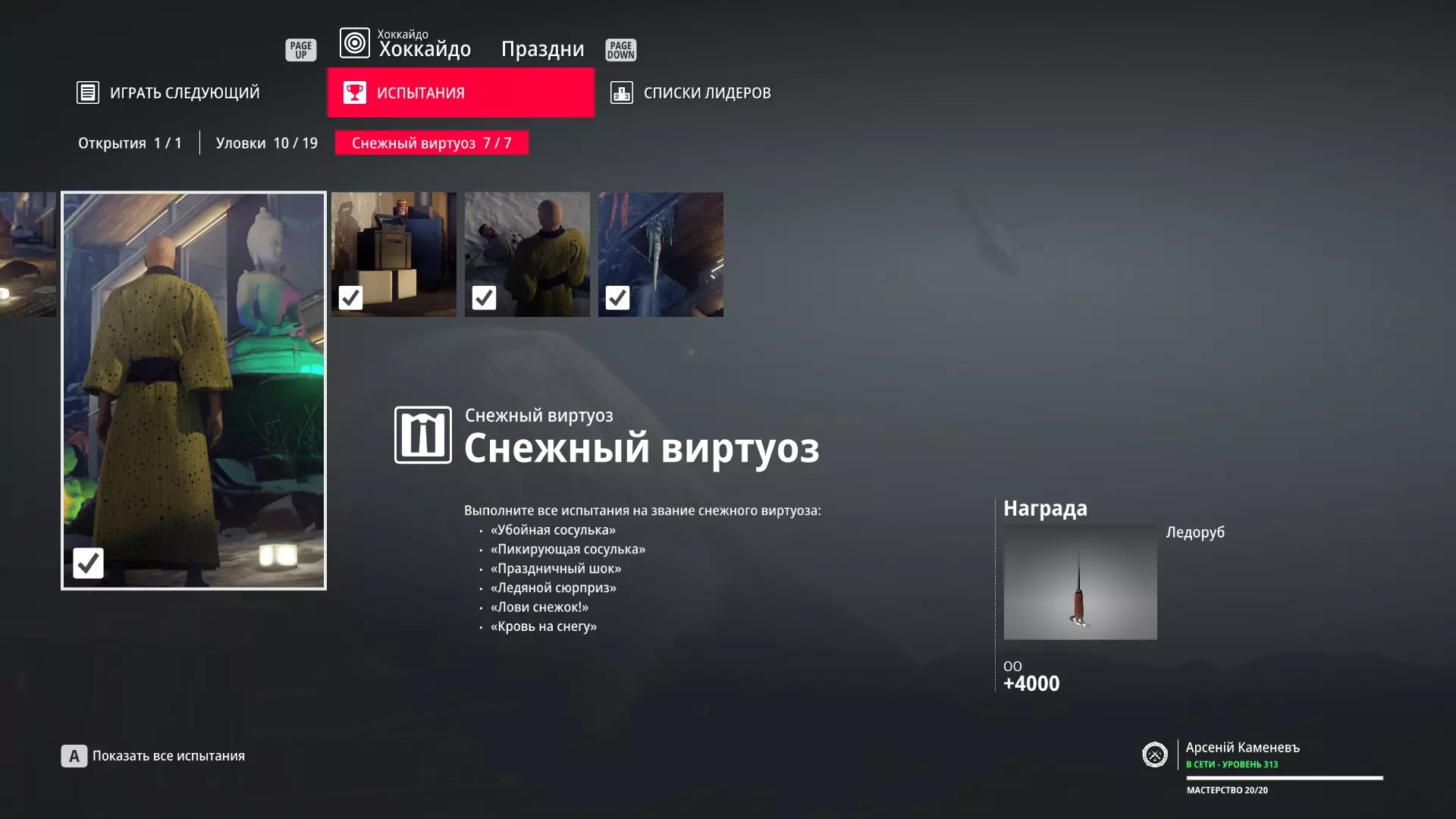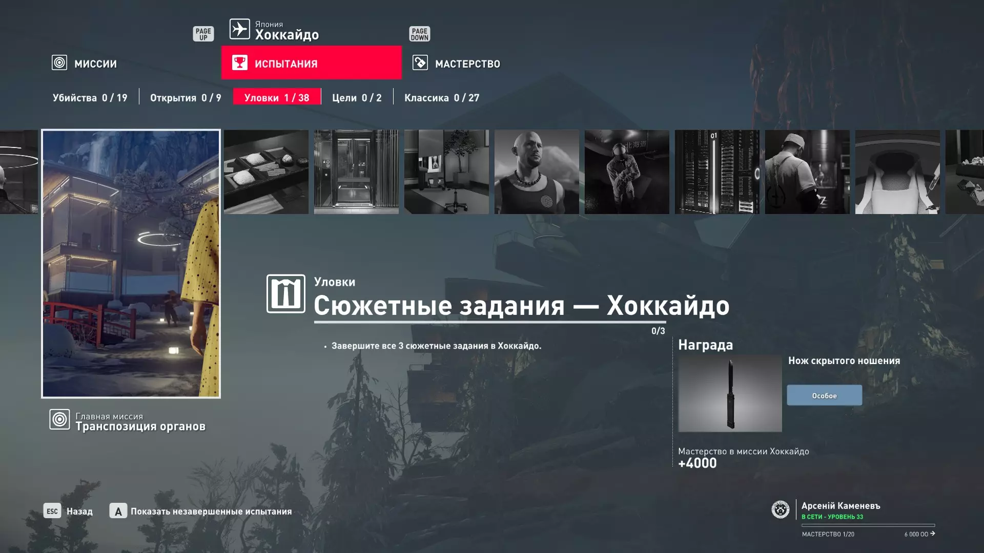 试炼:剧情任务 - 北海道 描述:完成北海道的全部3个剧情任务——【温泉】、【医疗失误】和【心不会说谎】。 奖励:隐蔽携带之刃