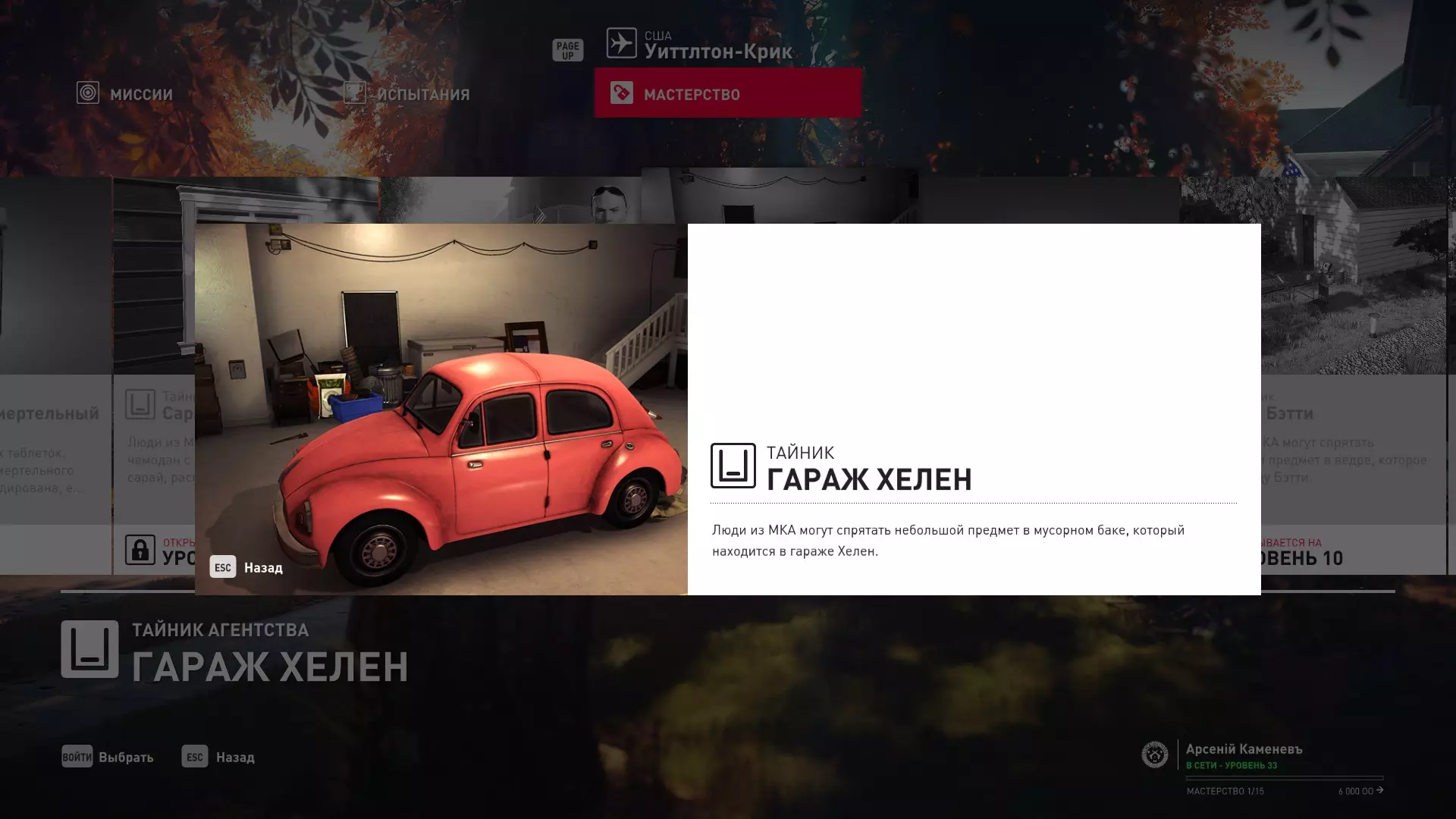 9级熟练度:在威尔顿克里克的起点伪装成拾荒者,以及海伦车库中的MKA藏身处