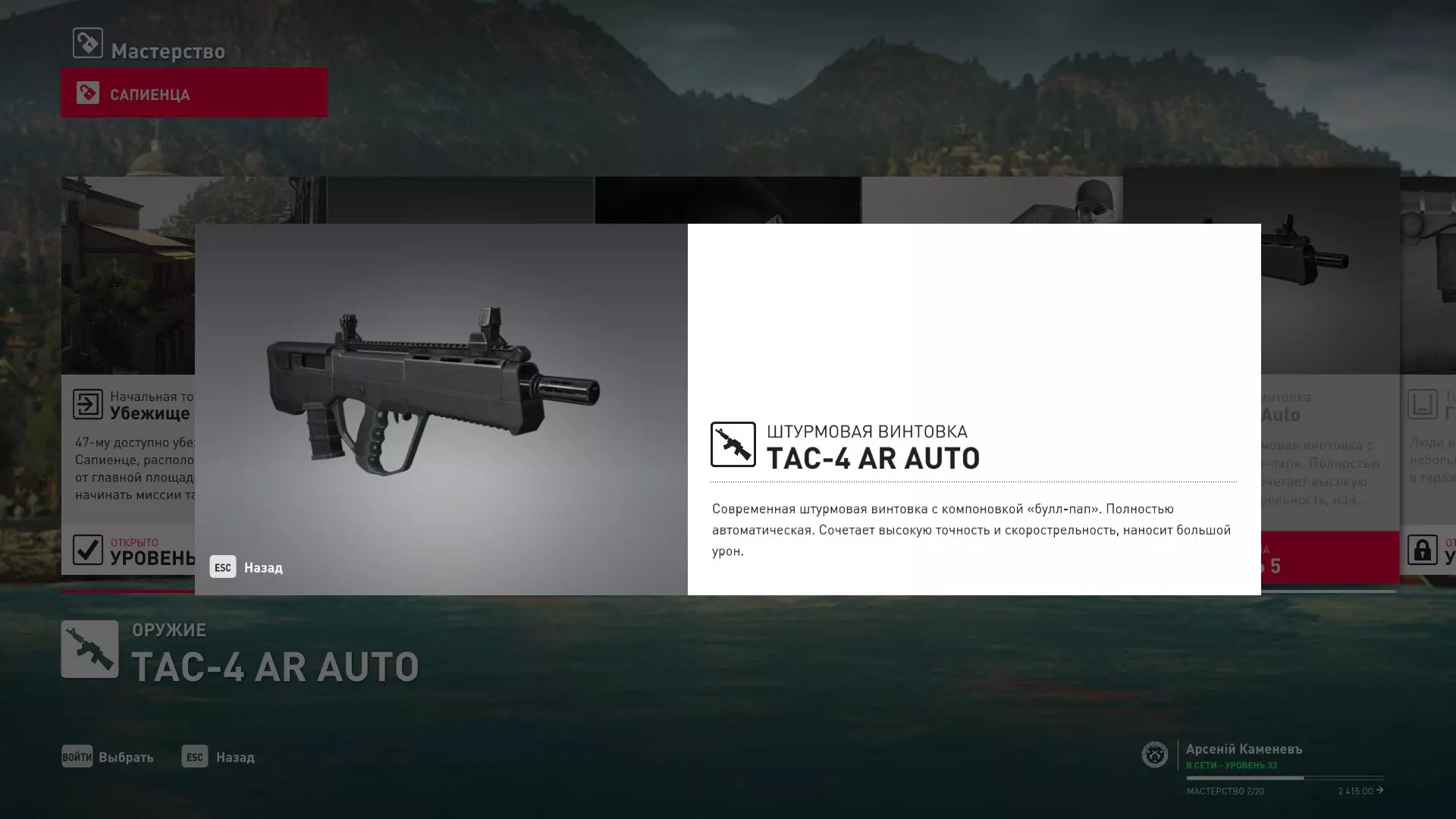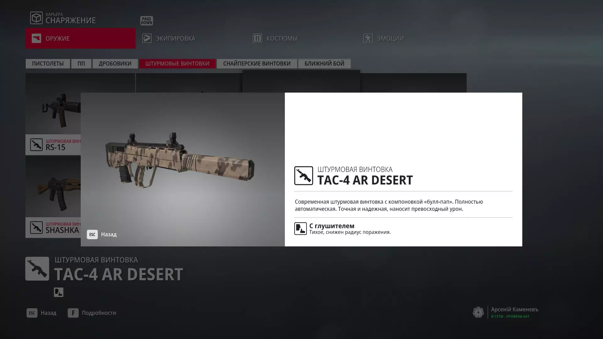 5级熟练度:TAC-4 AR Auto突击步枪