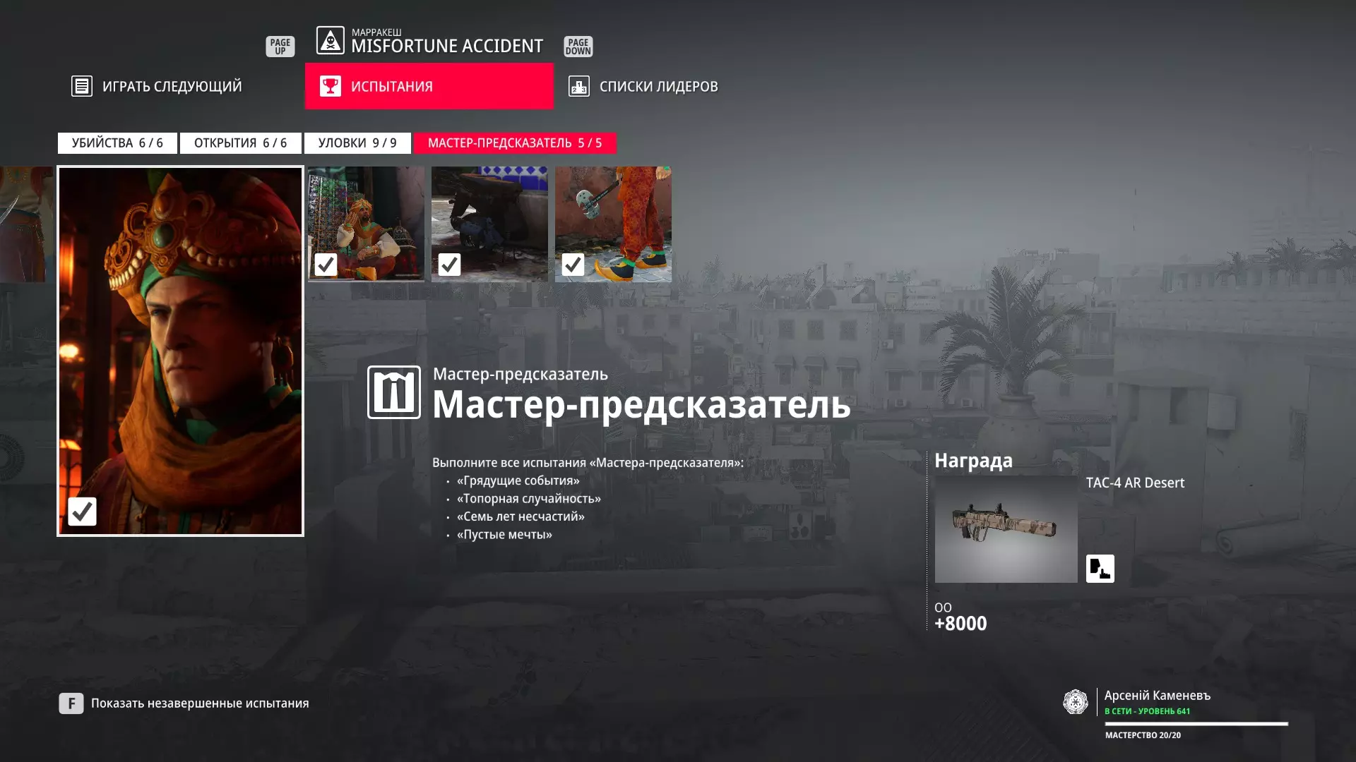 试炼:预言大师 描述:完成所有预言大师试炼 奖励:TAC-4 AR Desert