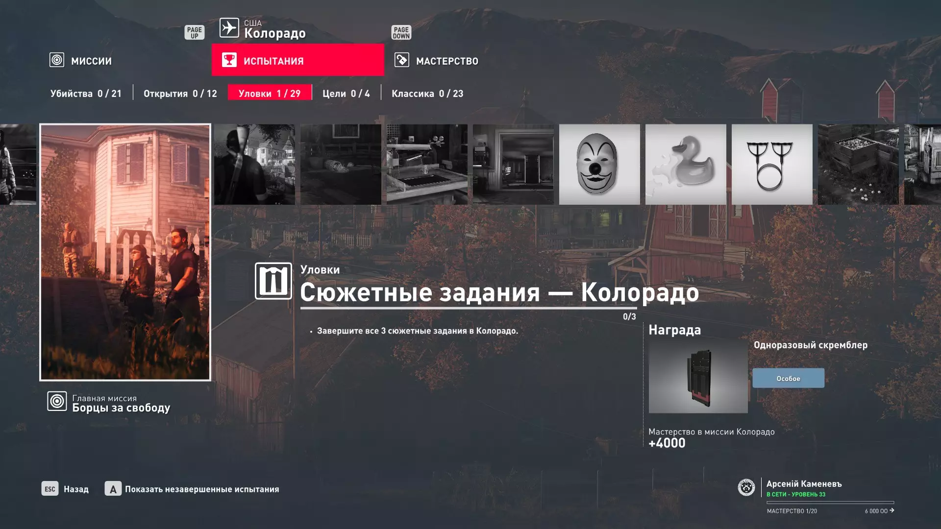 试炼:剧情任务 - 科罗拉多 描述:完成科罗拉多的全部3个剧情任务 - 【毁灭之力】、【射手】和【监听】。 奖励:一次性干扰器