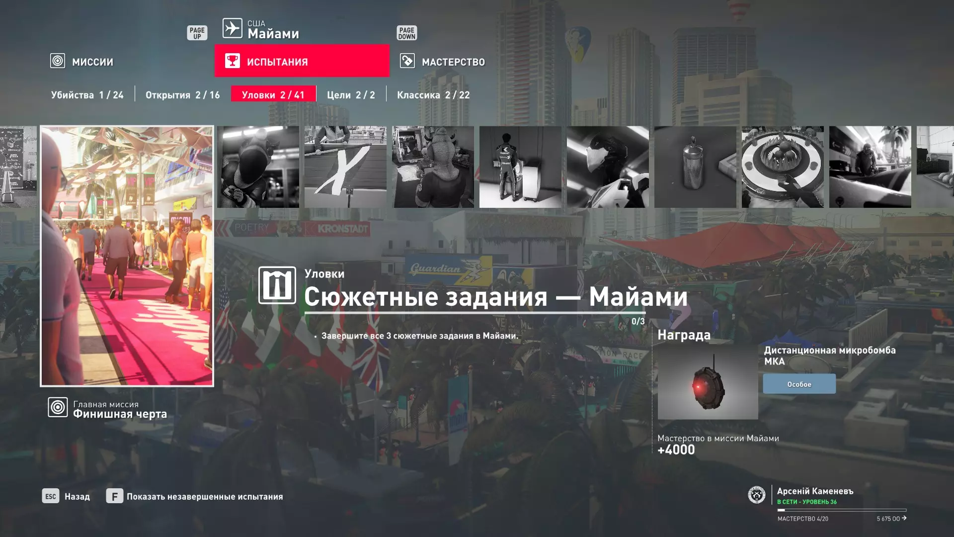 试炼:剧情任务 - 迈阿密 描述:完成迈阿密的全部3个剧情任务——【穿粉色衣服的女孩】、【新军队】和【完美机器】 奖励:远程微型炸弹MKA