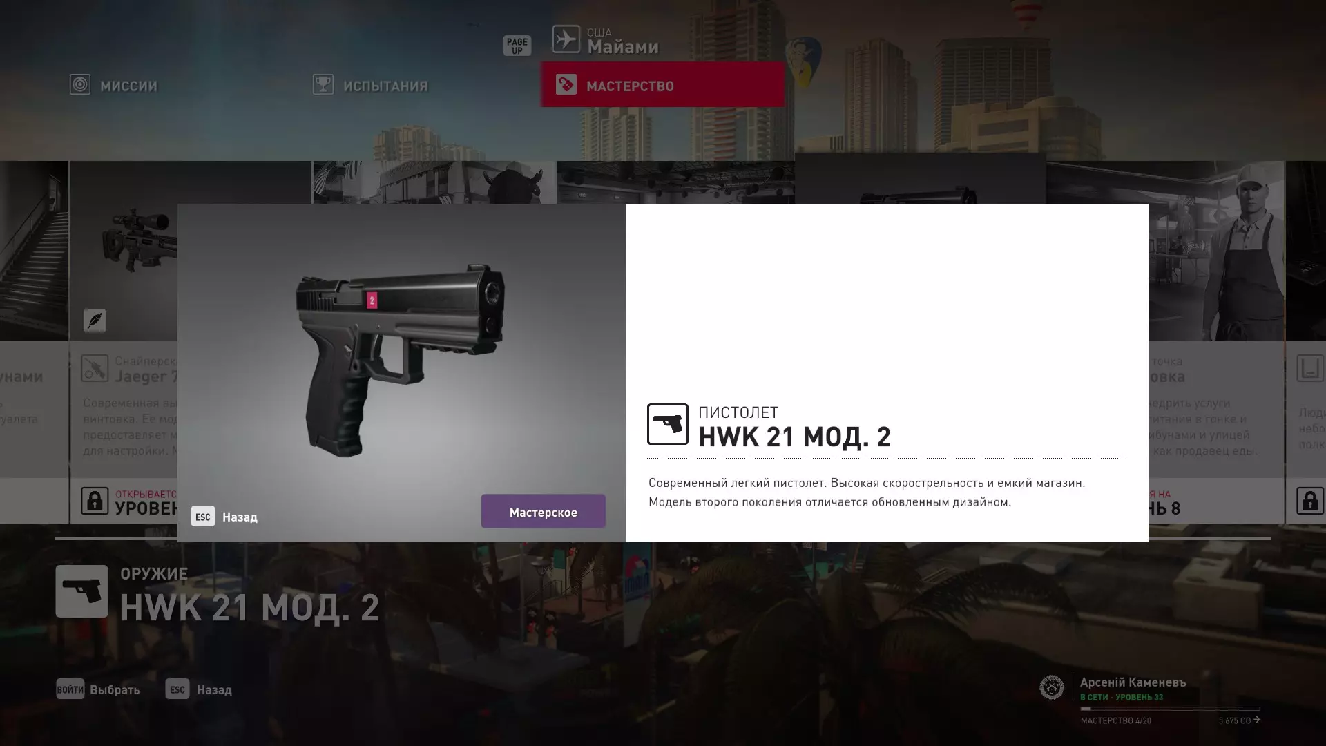 20级熟练度:HWK21 Covert手枪和按钮式模块化炸药MKA