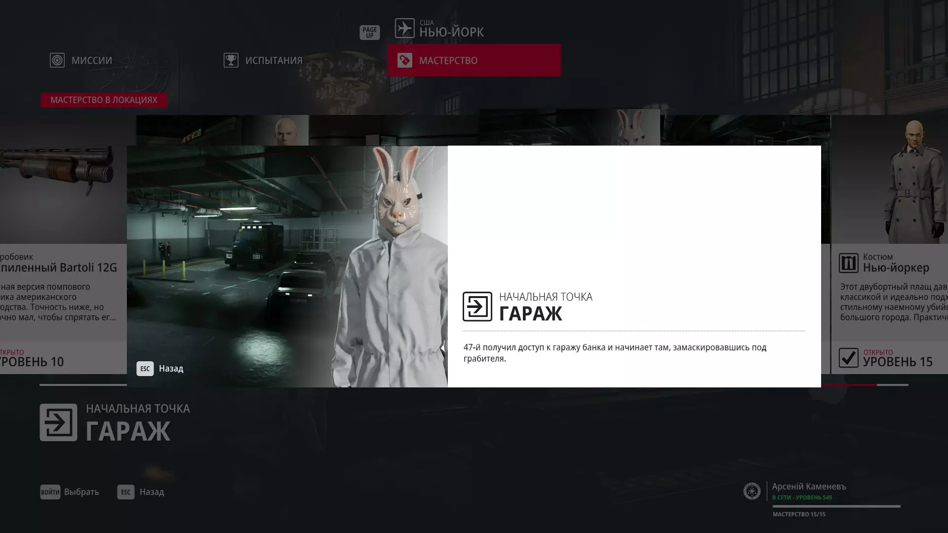 13级熟练度:以劫匪伪装在车库的初始点