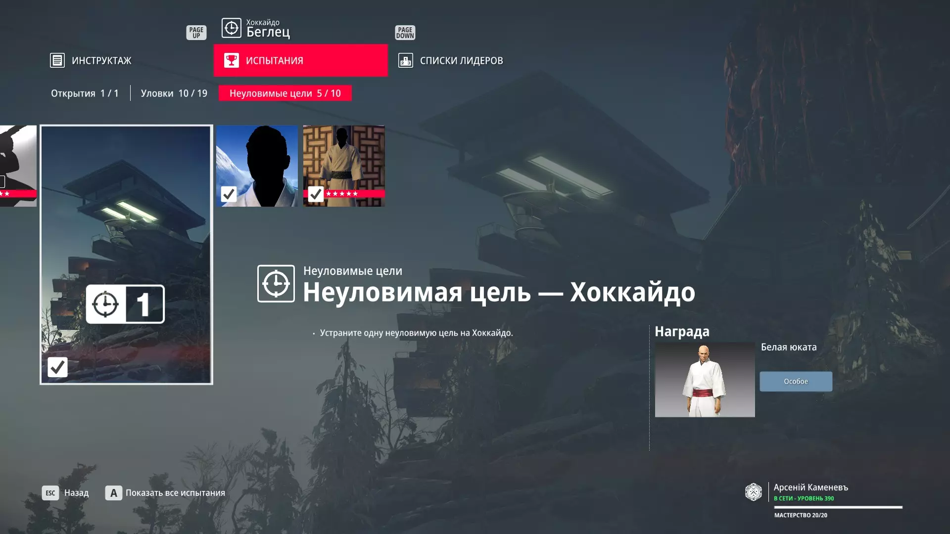 试炼:难以捉摸的目标 - 科罗拉多 描述:在科罗拉多消灭一个难以捉摸的目标 奖励:带猎人帽的作战服装 试炼:难以捉摸的目标 - 北海道 描述:在北海道消灭一个难以捉摸的目标 奖励:白色浴衣
