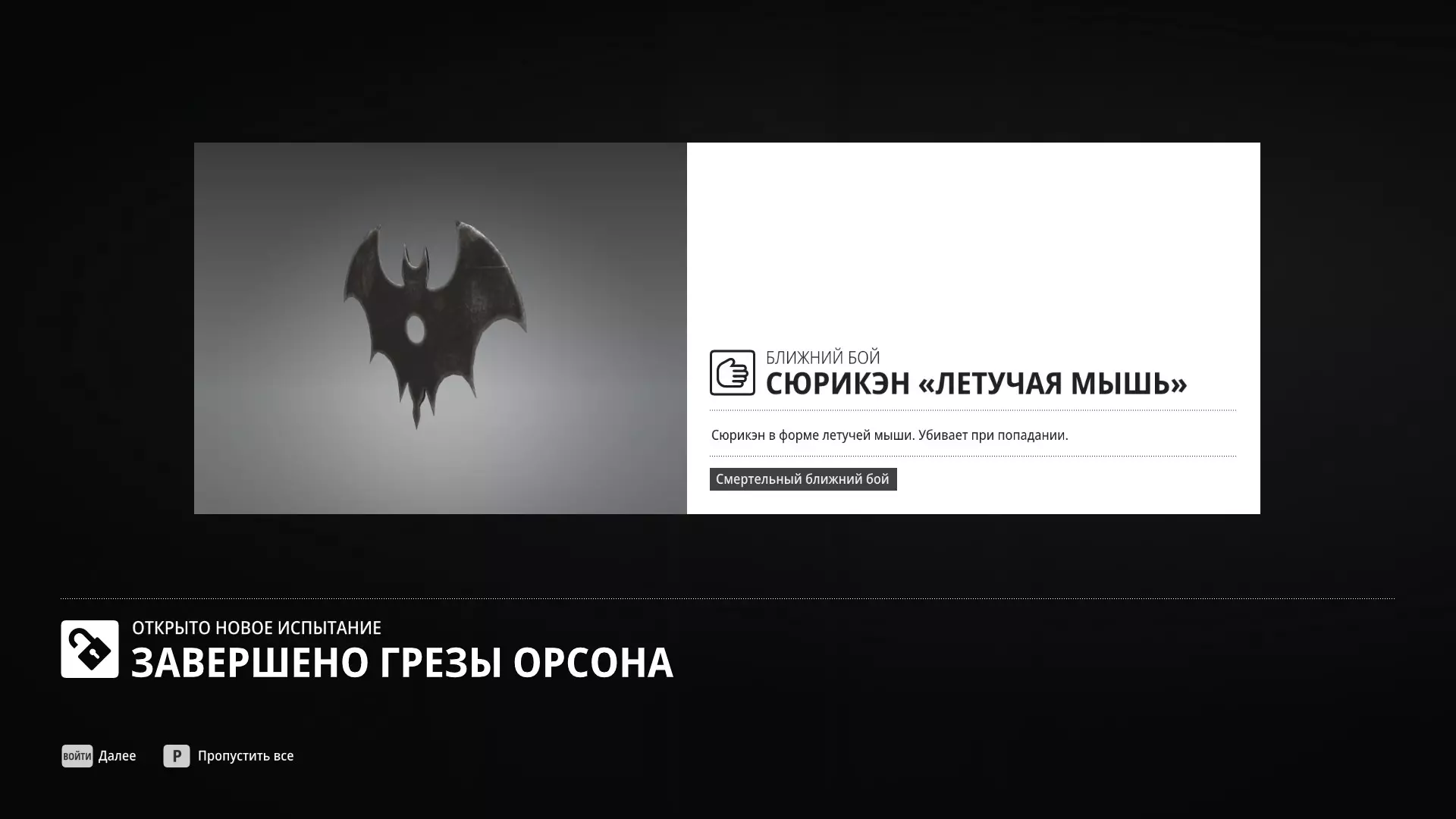 试炼:奥森之梦 描述:完成强化任务“奥森之梦” 奖励:手里剑【飞鼠】