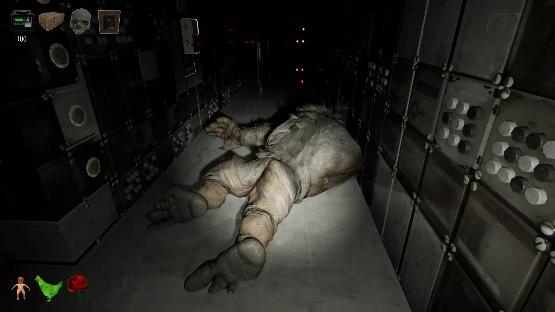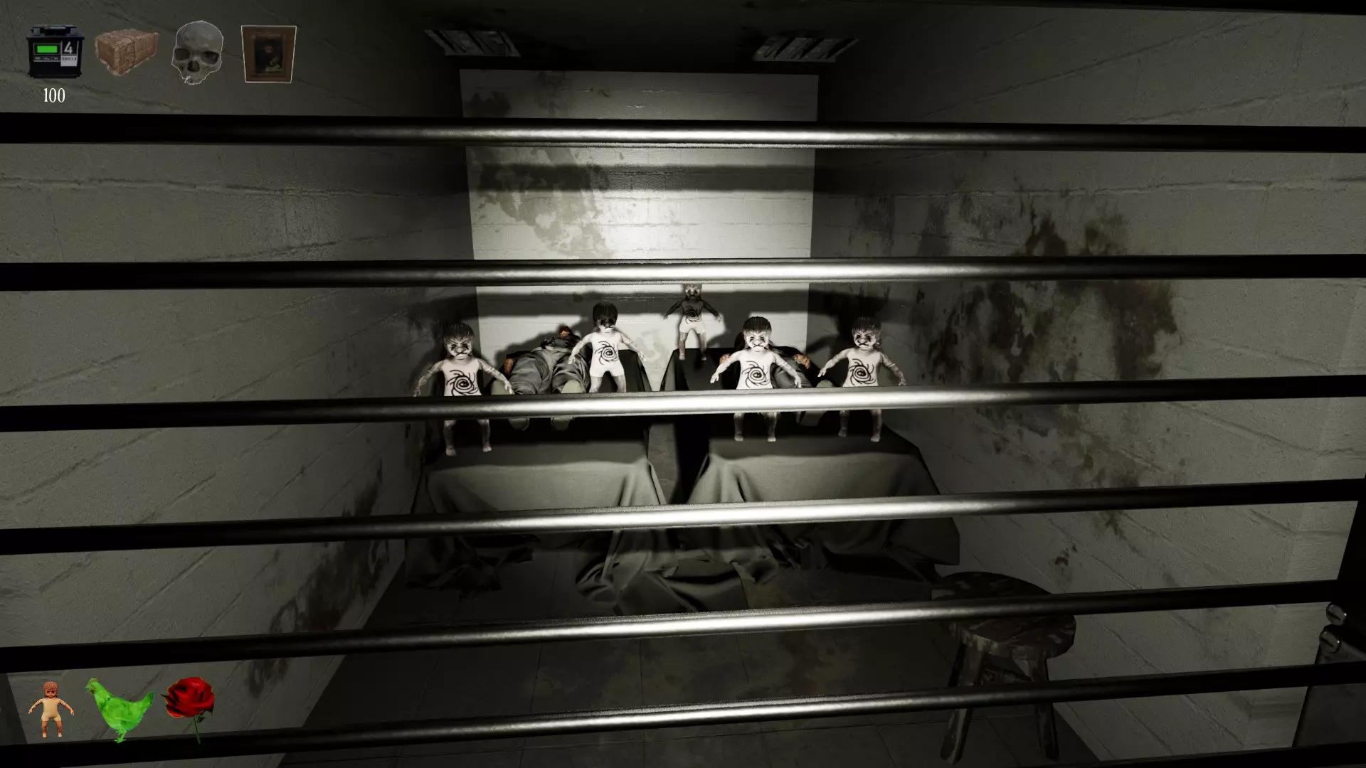 Tips Go to the Supply Room as soon as possible (you enter by simply pressing the button since it has a battery in the door). Charge one of the batteries and take the 6 'calm monsters' objects (rose, doll, straw, skull, portrait, straw). Pick up the already charged battery and enter the Special Room. Put the battery in its place and return to the Supply Room for another one. Drop down the hole and start charging all the batteries in the area. DO NOT take batteries that you find in the basement outside the charger area. Instead, swap them out for already charged ones so you have batteries on hand in more places. Take advantage of the first few minutes when things are still calm and drop your objects around the basement. Go up the stairs and place a battery to enter. Go to the Supply Room to find more items. You can repeat this process depending on the situation and the number of players you have. Having items scattered around the basement can be vital in the final stages. If you are two players or more, divide the zones, for example some in the Alpha Loop and others in the Beta. Being connected will make this task much easier. Dead batteries do not emit green light so by looking down a hallway you can see if any are dead. Remember that if you are interested in having a battery discharged sooner so you can install the one you have (this may be interesting to keep the tempos under control), you can open and close the cell door until it is exhausted and place yours. In Emily's cell (cell 4, Alpha loop) there are two dolls, one good and one cursed. You can use the good one to protect yourself from her since in the last stage Emily turns red and much more aggressive. The damn one (the marked white one) you will have to burn. When there are multiple entities outside your cell, try to kill several at once with the same disruptor. You can use the objects on each monster to make them stop for a few seconds and catch them more easily. If there are several players, one can run as bait and another activate the disruptor. Occasionally you will be able to avoid some entities by quickly passing by them, especially if instead of actively chasing you they are simply wandering the hallways. Avoid getting in their way. You can drop the objects by clicking the mouse wheel. Each entity responds to a particular object: doll-Emily, deer-straw, rose-Agnes/witch, chicken-Karen/farmer, skulls-Zhoy/green skin, portrait-Quin/floating mannequin. They serve to stop them for a few moments and defend you from a first attack. In each cell of entities with associated object, you can find the particular object on the cell's table (except for the deer, where straw is atrezzo). When the minor containment unit runs out of battery (the AI warns shortly before) go to the place and wait until the two batteries have run out (and release the shadows), as soon as they both mark zero, place two new batteries. This causes the shadows to return immediately, preventing them from discharging the cell batteries. The second time the minor containment unit discharges, it will be after you have taken down Shag, go as soon as possible and recharge its batteries when both are at zero. In the final stage you will have to be quick as keeping the entities in their cells will be much more difficult. Once the cursed dolls are released (this happens after the second time you recharge the minor containment unit and after a while), you must charge the incinerator battery (just before going up the stairs) to be able to burn them (there are 20 if you play solo and +10 for each extra player), you can check the missing ones by pressing the TAB key). To protect yourself from enemies you can focus only on batteries 1 and 5 or also (if you can) 2 and 6. This way you can activate the disruptors when you are in danger. Remember that the disruptors and the oven consume a lot of energy. Try to carry a charged battery with you. Memorize the map. Check the access door to the upper floor from time to time, you can use that path as a shortcut or to escape from entities and go back down through the hole (and you can recharge items in the Supply Room). To use the disruptor when there are dolls in a corridor, will stun them for a while. At the end of the game when the batteries of cells doesn't run out anymore, if the game doesn't end, check all cells one by one and make sure all entities are closed behind the small cell's bars and the door of the cell to the corridor is closed too. Leave straw and chickens in the long corridors where the cell doors are so that the two entities that run the fastest and therefore much more dangerous, stop as soon as they escape and stop in the middle of the corridor and thus prevent their uncontrolled exit and also be able to see them in time and catch them with the disruptor while they eat or continue standing. If you are in trouble and an entity comes towards you, try to avoid it by going towards it as close to the wall. Sometimes if you don't walk in the middle they don't attack you. You can leave a set of objects (all 6) right in the hallway above the stairs where you "revive", this way you can go down directly to the basement with protection. This can be very useful in the doll stage (especially if you want the invincible achievement) when you may go up and not be able to access the upper floor because the dolls left the access door without power. Note that the disruptor also affects outside the doors, which is its supposed area of effect. If the entities or dolls are near the door, the disruptor affects them as well. It is very useful when you are fleeing and you think you don't have time to hit them and then you stop right at the lever, where if you are carrying an object, the entity takes it from you, standing right there and you can activate the disruptor. Try not to move too far from the door to ensure that the beam hits them even if it is visually out of their reach. The more players, the more dolls to burn and fewer objects 