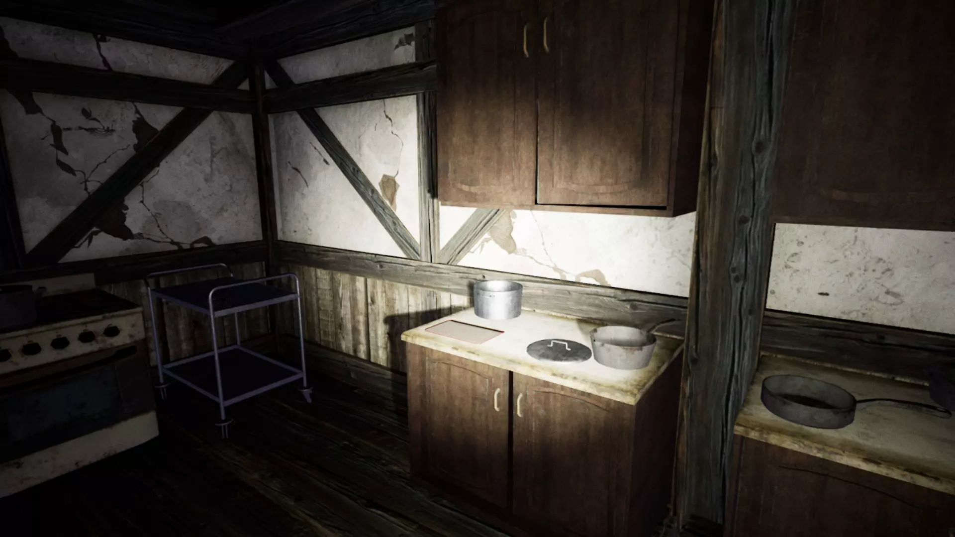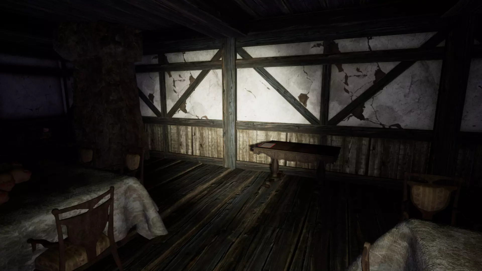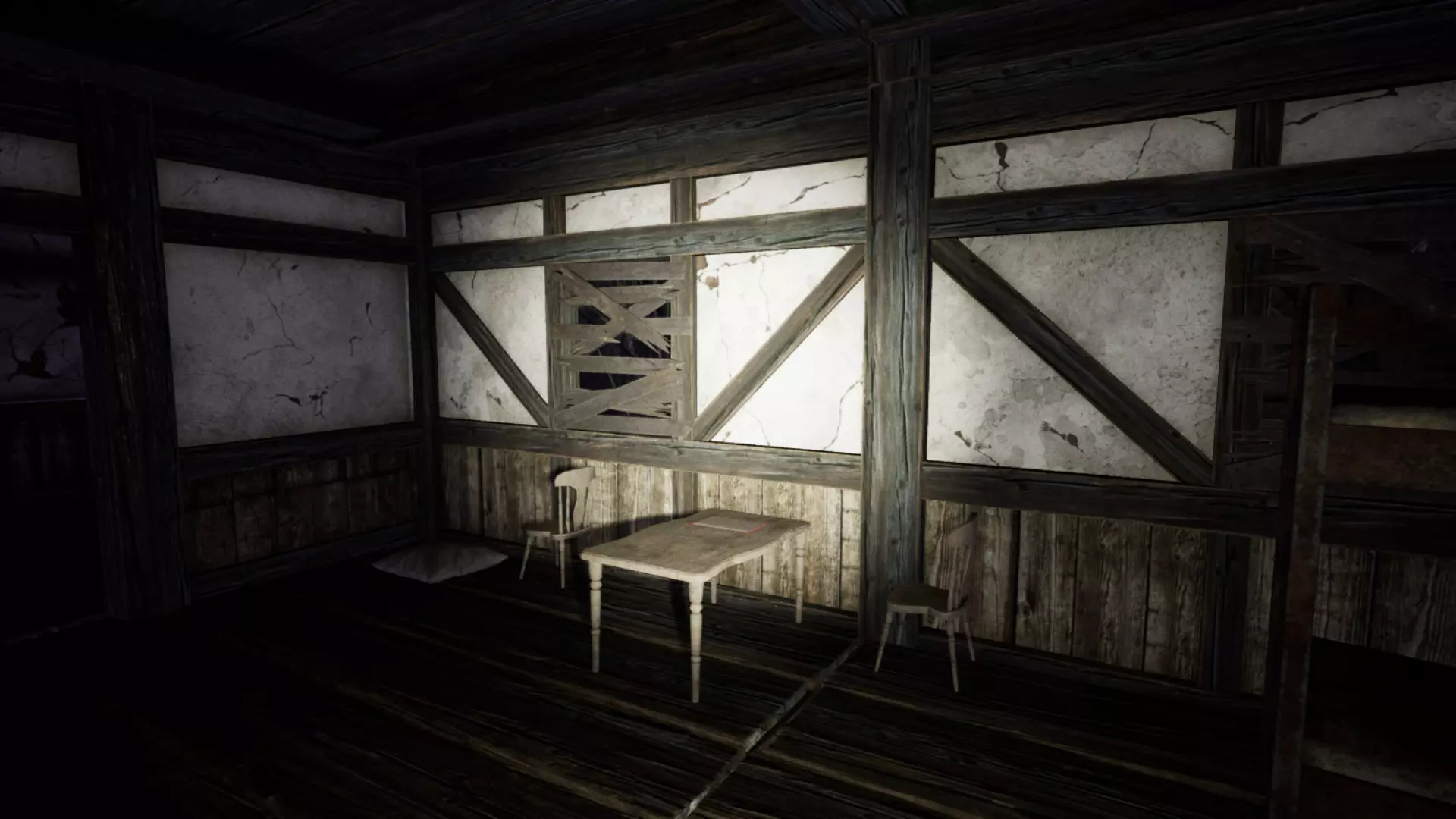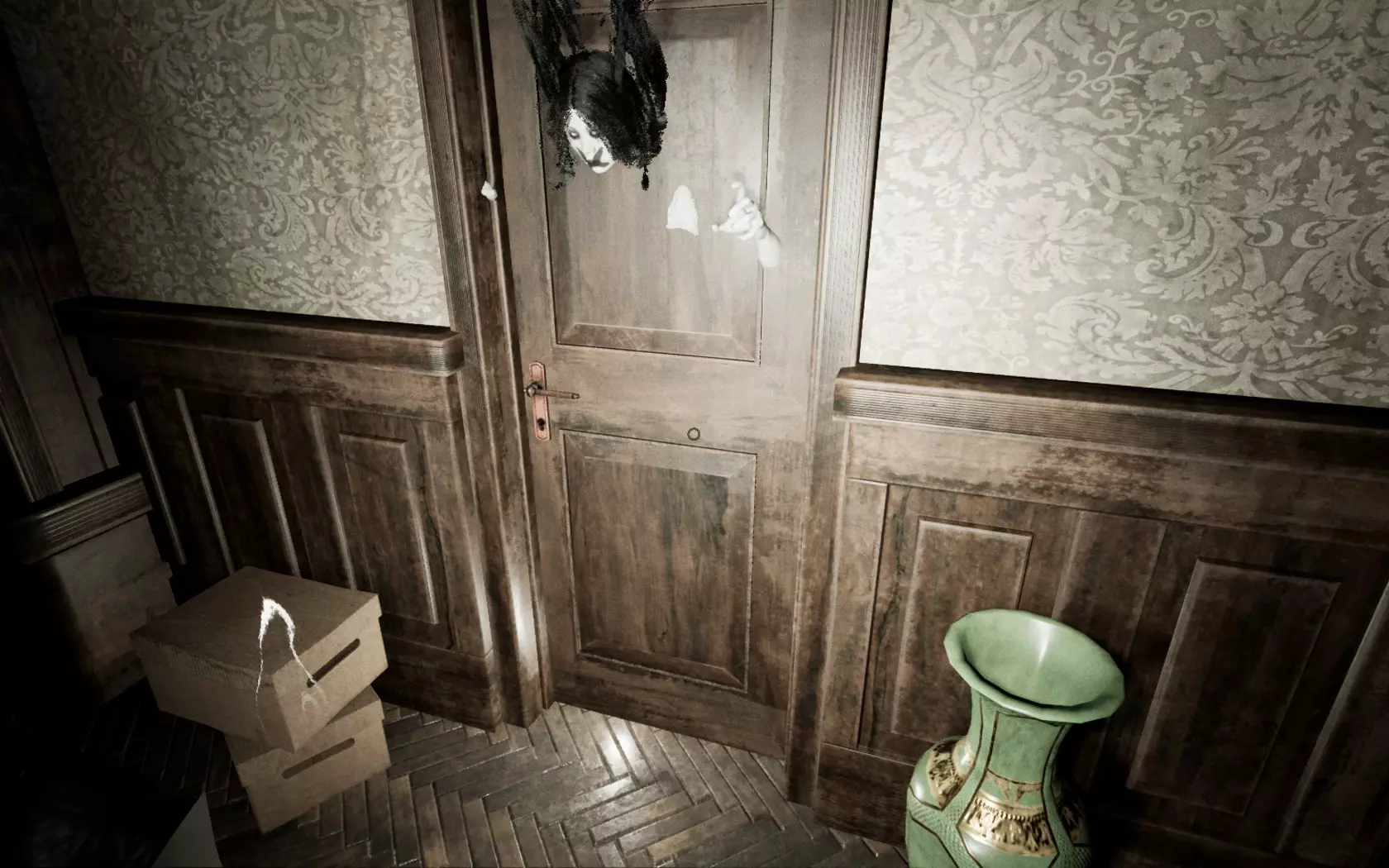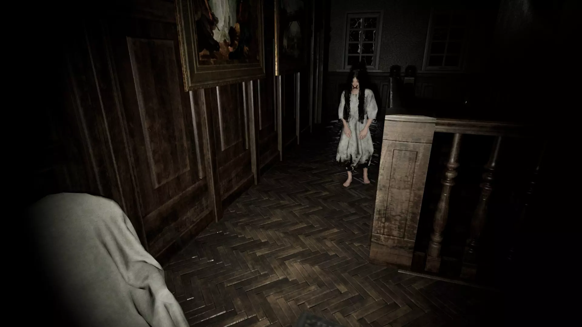 除了白光外,它还会发出咕噜声。仅凭咕噜声往往很难判断它的位置或来源。需要注意的是,这所房子有多个房间和多扇门,几乎所有区域都是相互连通的。熟悉房子的布局是很理想的。如果你听到它的声音,先花点时间猜测它在哪里。如果在不明情况时就跑出去,很可能会撞见它。步行能让你更容易定位它。由于它在不断移动,听到声音时停下来,更容易判断它的方向。步行还能让你在看到它发出的白光靠近时及时做出反应。跑步虽然可行,但你必须非常警惕,并且知道何时以及向哪个方向跑。她的白色光芒有助于你提前发现她,但如果她看到你,你会听到一个声音,并且很可能已经被她杀死(不过在早期阶段她速度较慢,你还有机会逃跑)。白色光芒的优势在于它能穿透地面,所以当你在房子里走动并听到她的声音时,可以抬头看向天花板,如果看到光芒,就能知道她在哪里。有时候关掉手电筒能帮助你更好地看到她。光芒比咕噜声更可靠,但要注意避免将其与窗户和木地板上的闪电闪光,或是手电筒照在镜子或罐子上的反光混淆。