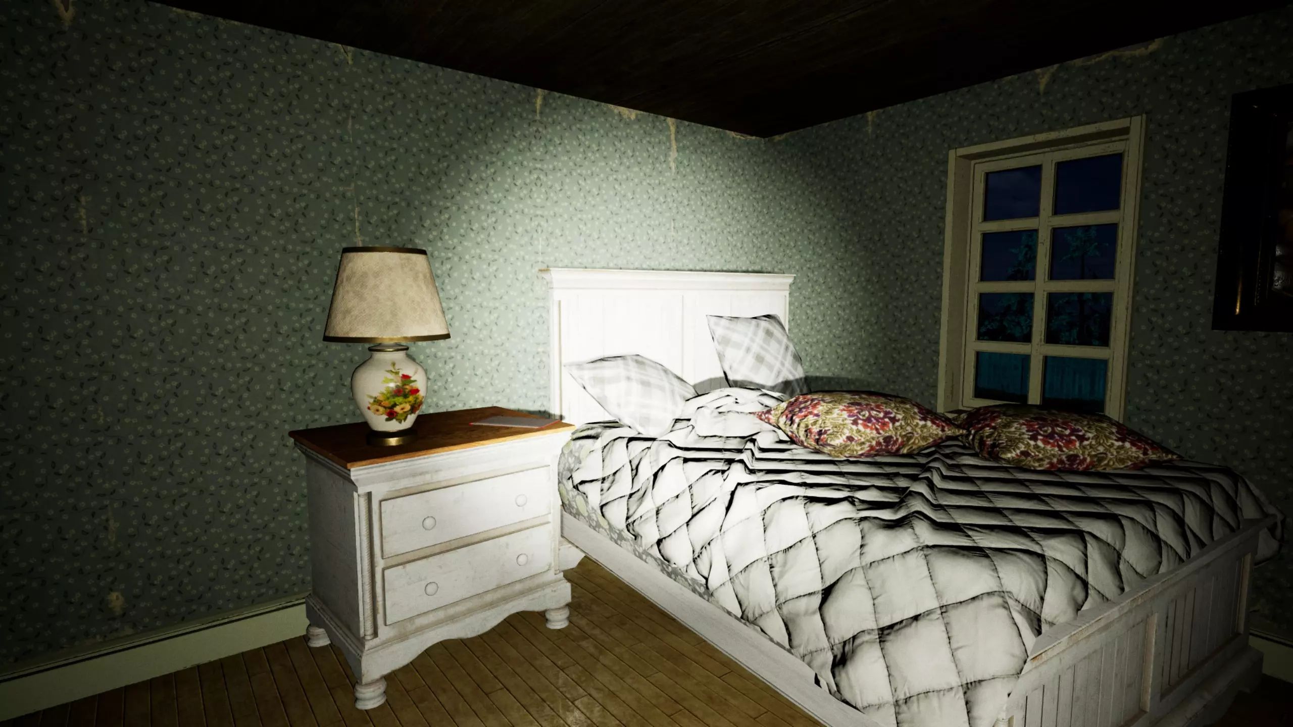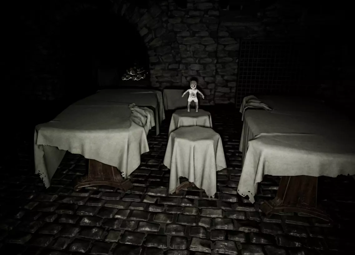 【背景(警告,包含剧情剧透,警告)】:你所在的宅邸实际上是一家殡仪馆。卢德雷一家从事殡葬业,业务地点就在自家地下室。由于许多逝者家属都非常希望能与已故亲人沟通,这对夫妇开始研究并实践古代的死灵术、黑魔法和伏都教仪式。根据父亲在笔记中的解释,女孩开始表现出奇怪的行为。他怀疑,由于与来世的接触,一些死者的灵魂可能已经进入了艾米丽的玩偶体内。一天晚上,女孩突然发狂,母亲过来安抚她,并给了她一个洋娃娃。他们发现给女孩洋娃娃能让她平静下来,于是买了好几个。然而有一天,这招不再奏效,艾米丽彻底变得充满敌意,夺走了养母格雷琴的生命,格雷琴被黑暗吞噬。一直玩这些洋娃娃的艾米丽最终被来自黑暗的邪灵附身。她的养父武尔特致力于研究古老的仪式,努力调查原因并寻找解决办法。在调查期间,他将艾米丽和大部分被附身的洋娃娃锁在了阁楼里。他得出结论,只有火焰才能清除和净化邪灵。开发:首先你需要进入房子。你出现在主门前面,但门是关着的。从左边绕着房子走,直到找到一个通往地下室的入口。找到通往一楼的楼梯,它从左边的洞口掉下去,然后再向左走。