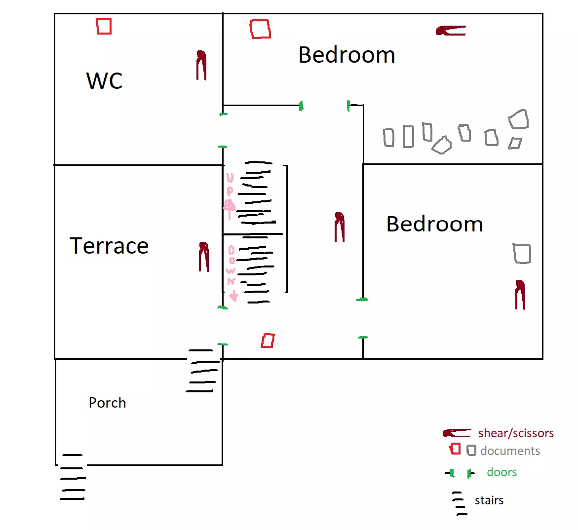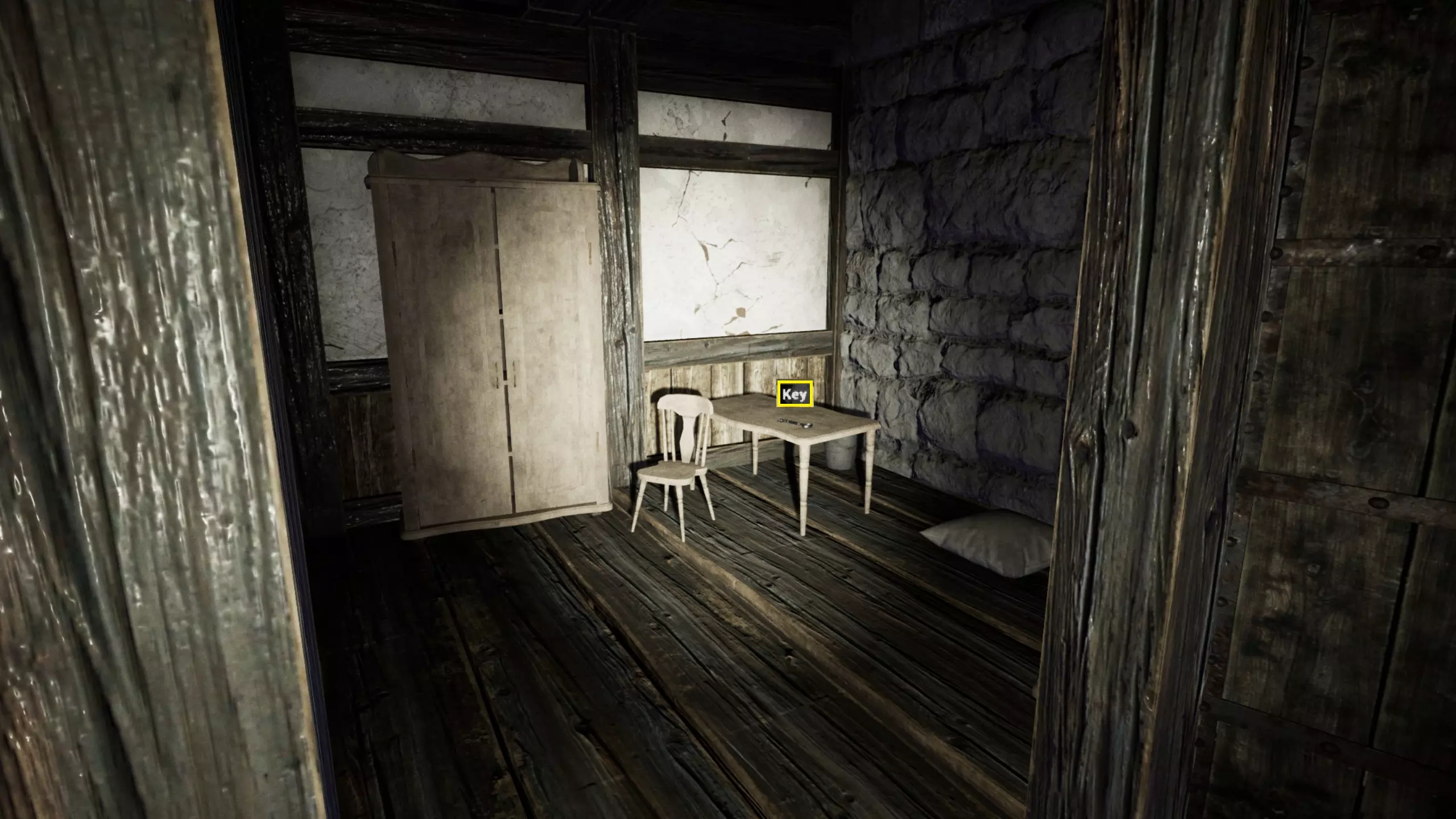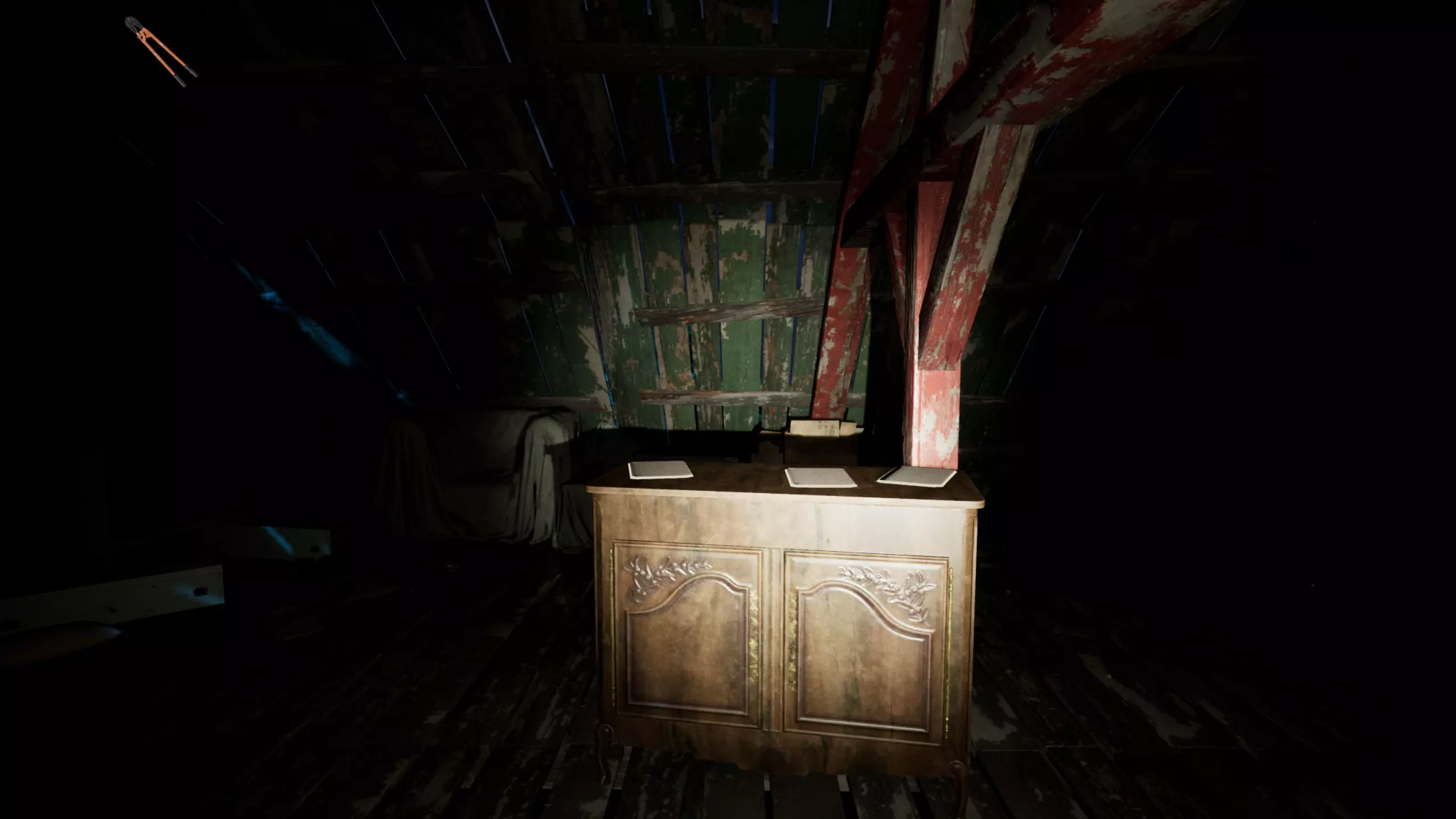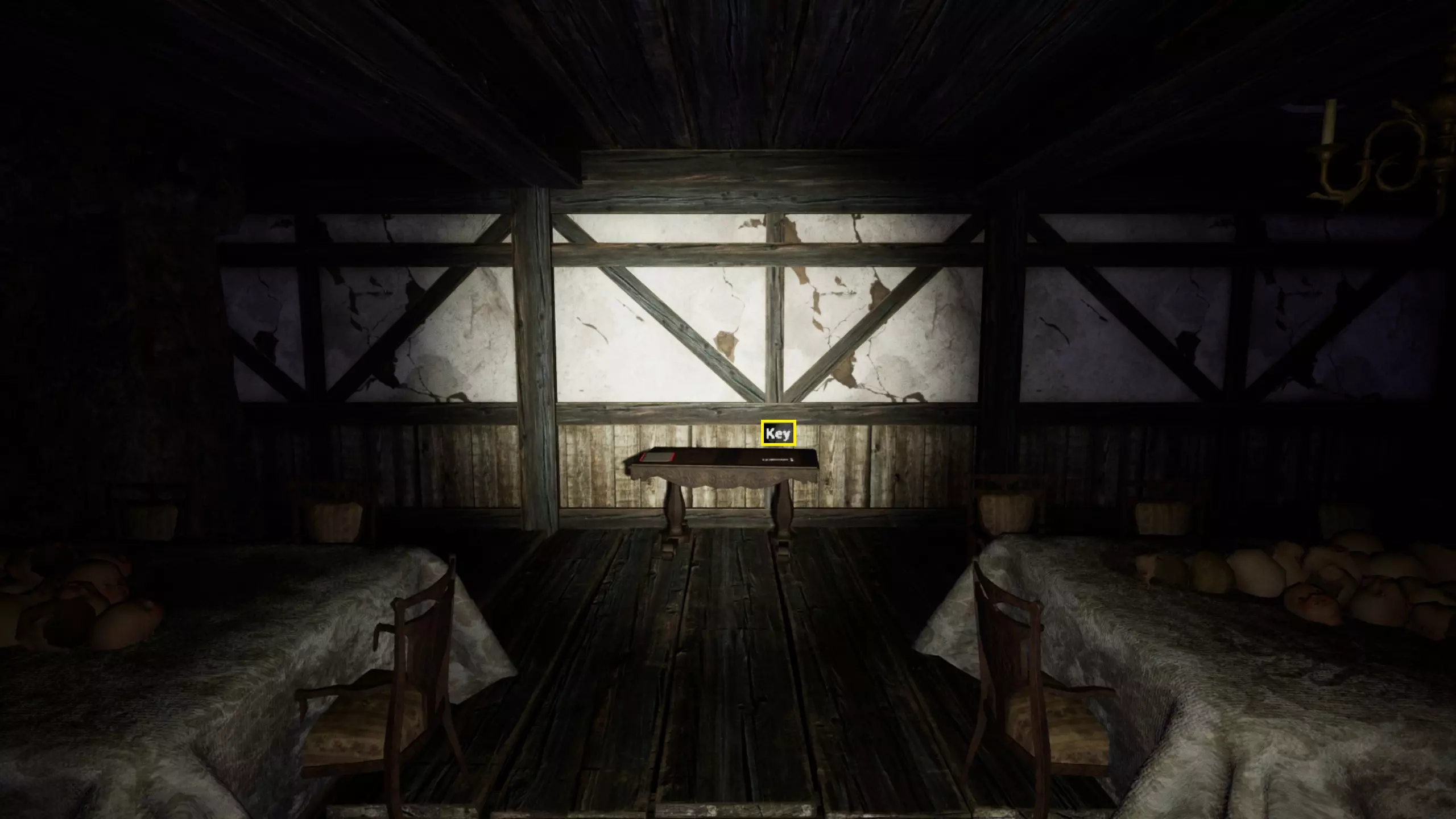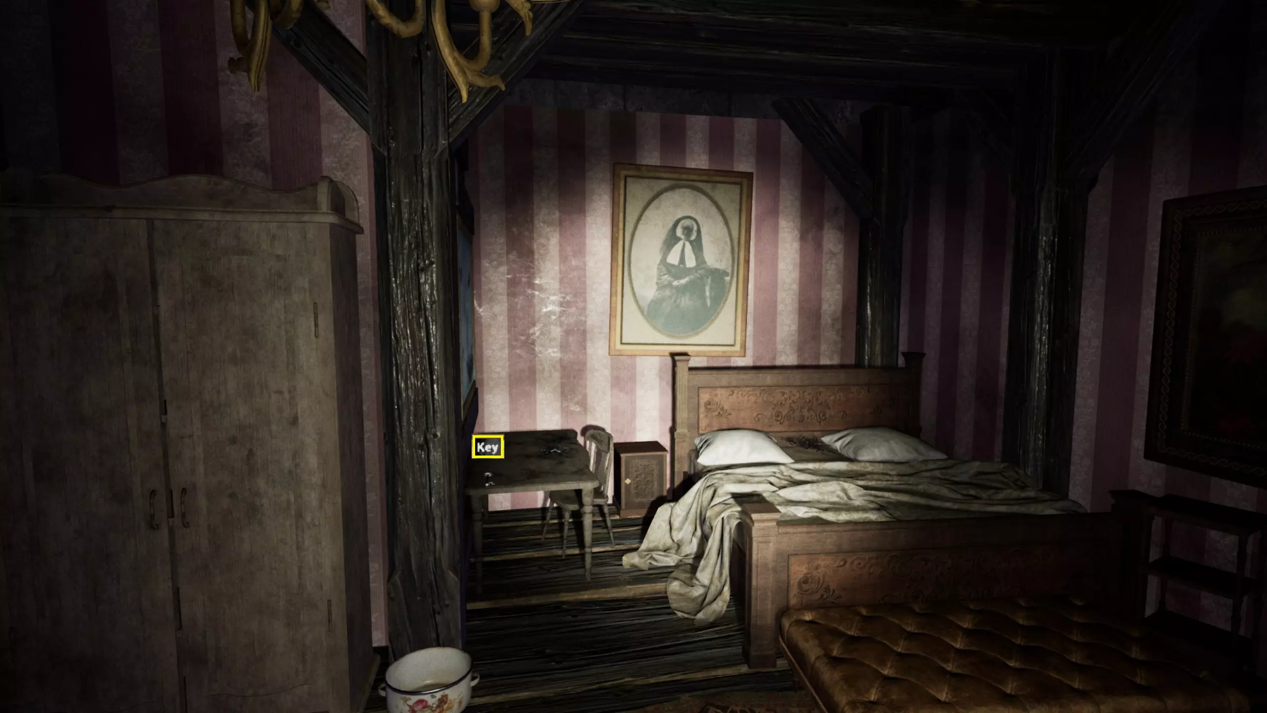 可能的房屋/地下室钥匙位置,通常在楼上: 上楼后,钥匙在床旁边的桌子上