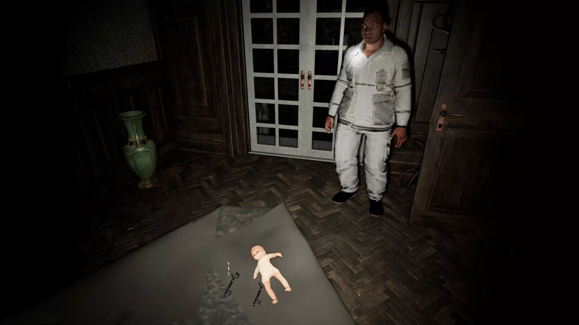 在这个模式下,跳跃选项的作用稍微大一些。变成玩偶后,你可以做一些人类形态无法做到的事情,比如跳过栏杆、站在家具上或者穿过狭窄的缝隙,不过这些都不是特别有用,也不会带你去人类形态无法到达的地方(最多能节省时间或者让你胡闹取乐)。另一方面是手电筒的使用。除非你没有和其他人进行语音交流,否则手电筒对于与其他人建立非常基础的沟通相当有用(比如指示方向、让自己被看到、隐藏自己、吓唬人、吸引注意、发出警告等)。钥匙无法掉落,但你可以传递或交换任何类型的玩偶(你放下后别人可以捡起来)。关于钥匙,当怪物抓住你并将你变成玩偶时,钥匙会掉落在你“死亡”的同一地点。记住事发地点很有用,这样你就可以回去拿钥匙,或者让其他人去捡,如果不这样做,就必须一直寻找直到找到它们。