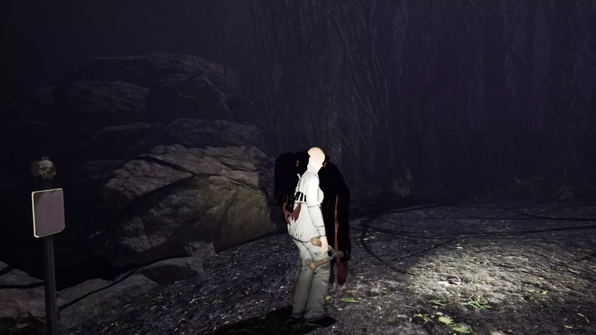 如果你把同伴变成了玩偶,就赶紧跑到熔炉那里,人类负责生火,玩偶则通过焚烧变回人类。携带一个“好”玩偶也能在怪物攻击同伴时保护他,在怪物把同伴变成玩偶前,你有大约5秒或更少的时间,把一个“好”玩偶交给他来中断攻击。这会让怪物平静下来(大约2分钟),给你们重新装备和继续寻找标记玩偶的时间。