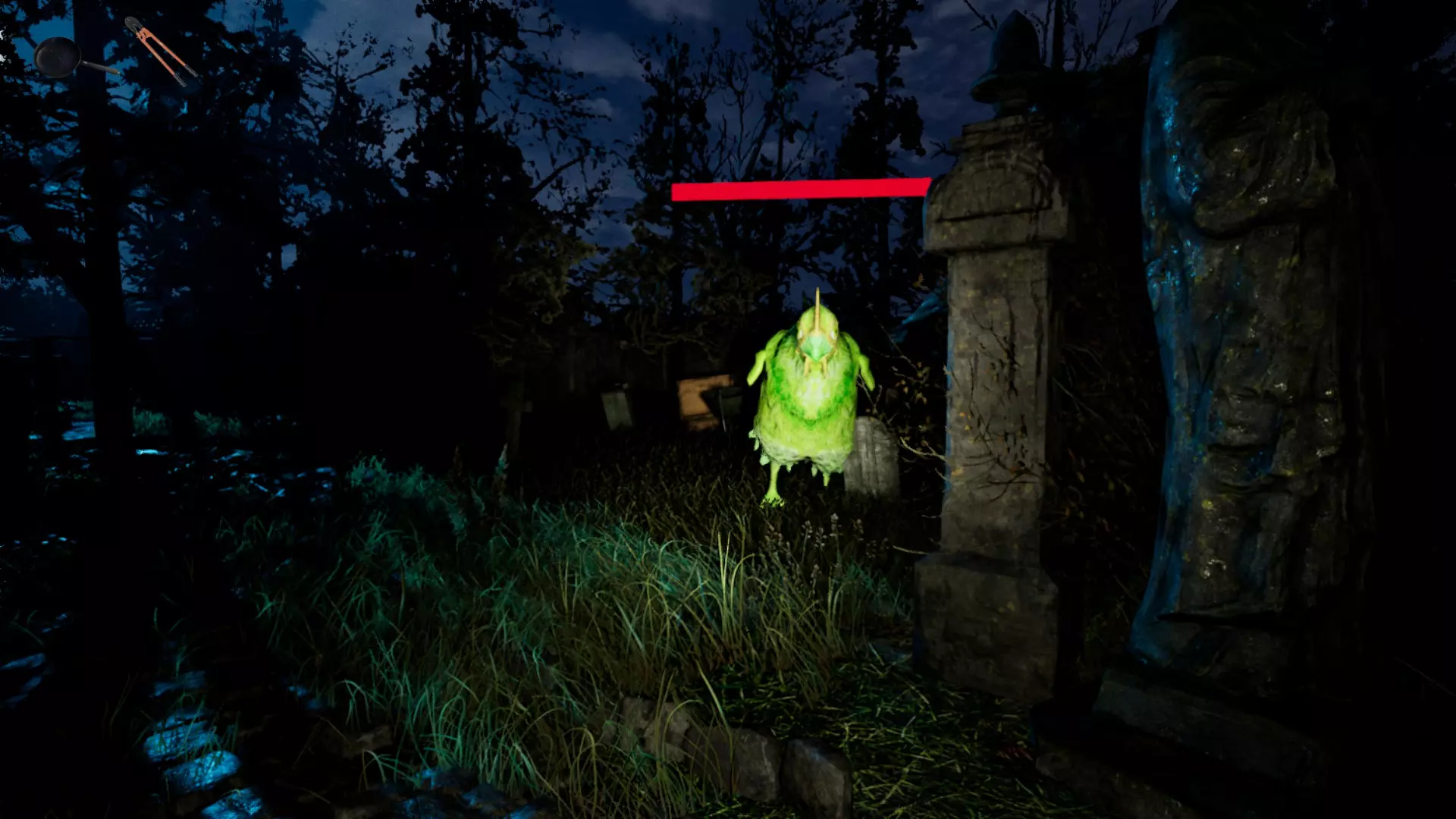 背景故事: 这个故事要从米莉森特和她的丈夫买下这座旧农场说起。他们决定买下它是因为价格非常便宜,尽管他们一直不明白为什么会这么便宜。前主人是当地人,他们说风车有神奇的治愈能力。在卖给他们房子时,前主人给了他们一些护身符。米莉森特和乔只把它们当成普通的礼物。他们还得到了一个盒子,按照当地人的说法,这个盒子能困住邪恶,于是他们把盒子放在了墓地里。在那里住了一年后的一天,一个骨瘦如柴的老人出现向他们讨些食物。乔拒绝了,并让他离开。老人客气地走了。一周后,乔得了重病,他感到无法满足的饥饿,整个人也变得不再是以前的样子。米莉森特开始用活物喂他,但这远远不够。几周后,他试图袭击她。在这些事件的逼迫下,她绝望地决定尝试原住民给她的那个盒子。她成功将丈夫推进了盒子,盒子将他吸了进去。她关上盒子并将其烧毁。噩梦似乎就此结束了。 多年后,凯伦和她的丈夫乔继承了这座农场。他们是一个有两个孩子的家庭。和之前的主人一样,他们喜欢便宜的东西,以低廉的价格购买了一大批过期的杀虫剂。一天,凯伦在花园里散步时发现了那个旧盒子。她打开盒子,却发现里面空无一物。一股恶臭从盒子里散发出来。尽管气味难闻,却让她感到饥饿。日子一天天过去,凯伦变得越来越饿,也越来越容易生气。她的体重不断增加,头发开始变白并脱落。凯伦开始生吃农场里的鸡……直到有一天,她吃掉了自己的孩子。乔被这场不幸击垮,决定将自己作为诱饵牺牲,以便将凯伦锁在谷仓里,避免造成进一步的伤害。 目标:抓住怪物并将其带到货车处。 1. 在中央房屋的中层找到剪刀(“大剪刀”)。 2. 打开存放毒药的小房子的门(共2扇门)。如果不是单人游戏,还要打开风车的门。 3. 拿起几袋毒药,走到鸡饮水器旁,将毒药放在那里(按2键)。 4. 去厨房拿起煎锅,然后出去找鸡,将其打晕并捡起。 5. 打开谷仓,走到鸡饮水器旁,装满水,放入毒药,再将鸡浸湿。 6.找到怪物并给它喂食。趁它进食时去获取更多食物,重复此过程直到怪物中毒。然后用手推车将其运到货车处。 注意事项: 1. 如果怪物吃了未中毒的鸡肉,它会恢复健康,鸡肉标记也会上升(按TAB键查看)。它不一定会偷你的鸡肉,也可能自己在农场区域觅食。 2. 如果怪物抓住你且你未携带鸡肉,你会死亡。但如果不是单人游戏,你会受伤,需要前往风车处恢复。为此,你需要位于中央房屋上层的天使雕像。 3. 若进行PVP模式,你可以自行治愈;若进行合作模式。然后,拥有这个雕像的其他玩家必须和你一起去风车那里治愈你。 当小鸡的计数器归零时,意味着怪物已经吃完了所有有毒的小鸡,它会摇摇晃晃地走动,过一会儿就会摔倒在地上,通常是在初始区域附近。去推独轮车,把怪物装上去,然后送到货车那里。 提示: 留意怪物的位置并避开它。 带几袋毒药到小鸡饮水器那里并放在那里。水会持续2分钟,之后就会耗尽。 尽量不要让怪物进入小鸡所在的区域,否则它会恢复生命值。你可以试着在携带有毒小鸡时让它跟着你,跑到你感兴趣的区域,直到把小鸡给它。毒水只会存在有限时间,尽量利用这一点。当你看到怪物在其他区域时,可以把房屋、谷仓或小屋当作捷径。 你可以在选定的位置放置毒鸡,它们会一直留在那里,直到被怪物吃掉。把毒鸡放在战略性区域。你最多可以同时放置4只毒鸡。只有当怪物吃掉一些毒鸡后,新的毒鸡才会出现。被击晕的普通鸡在逃跑前只会持续约30秒。怪物吞下鸡大约需要12秒。 注意:总共有24个。 1. 房屋内有【毒袋】(在桌子上)