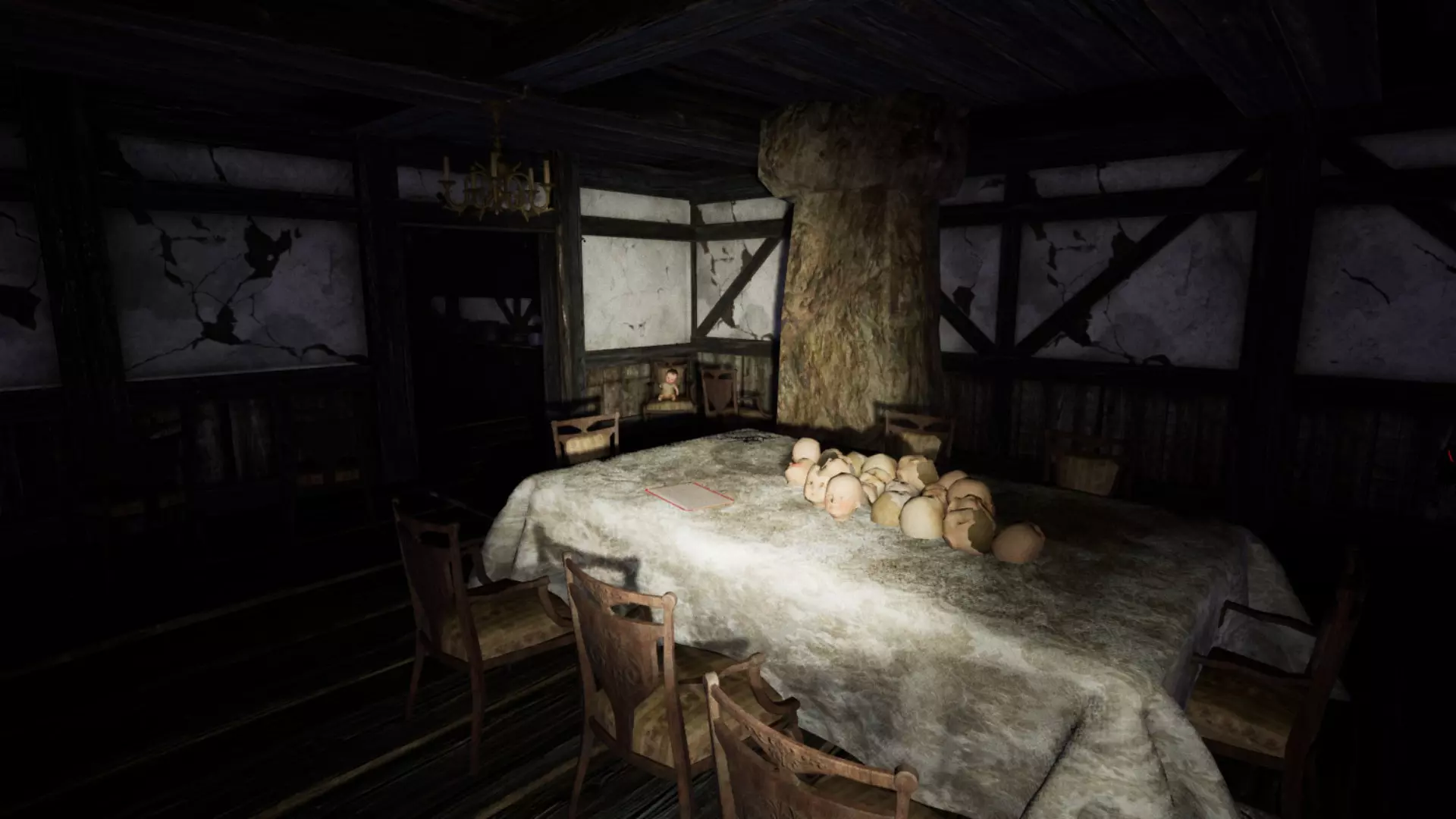 当你烧掉一个娃娃时,女孩在变形期间的几秒钟内无法对你造成伤害。如果你不确定能否快速找到一个标记的娃娃,最好随身携带一个“好娃娃”。我建议把地下室的娃娃留到最后,原因有以下几点:它静止不动,无论过多久都不会跑掉。它离锅炉区域很近,而且周围有木头,这样可以省去我们冒着死亡和从头开始的风险四处奔波,尤其是在最终阶段,怪物不再平静,速度比以往任何时候都快,因此很难躲避。