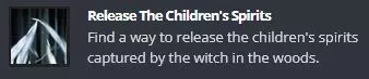 背景故事,笔记内容: 有一天我还在家里的床上,第二天醒来就到了这里。 这里还有其他孩子,大家互相照顾着。 每天都会有食物给我们和小狗们。 小狗们永远不会长大。它们总是被关在一扇门后面,我们不允许和它们一起玩。 今天我第一次见到了女巫,她又可怕又吓人! 除非她带你去,否则你不能进入玩具室。 一旦有孩子被带去玩具室,就再也不会回来了。 她在房子下面施展魔法。 一个孩子消失后,墓地里的树根就会长出一个娃娃。 我觉得女巫在用某种方式吸取孩子们的灵魂来维持生命。如果你做错了什么事,她就会出现在你身后教训你。 今天我看到女巫在看一朵玫瑰,她好像陷入了恍惚状态。 我们永远也找不到森林的出口。 一个月前,我出现在这个可怕的地方。 我觉得我撑不了多久了。 --------- 另一个结局: 当你把女巫带到湖边时: 快点! 你杀了女巫。孩子们的灵魂得到了解放,但这不是我们希望你做的。我们要的是女巫。你为什么要把她扔进水里?上车! 我在等你把女巫带到车上。你真是个糟糕的员工。现在真的很难找到好帮手。在我们决定怎么处置你之前,你得待在这里。