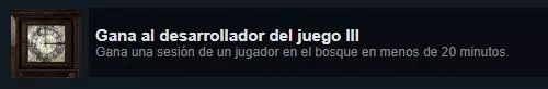 CONSEJOS Usa las posiciones de velocidad e invisibilidad en los muñecos finales. Recoge el pelo de bruja y la cola de perro antes que el muñeco de raíces. Coge primero los que están más lejos y deja los que están más cerca para el final. Intenta llevar siempre una rosa, excepto si juegas con más gente que es preferible reservarlas para la etapa final tener más rosas que coger. Cuando sois varios (a más jugadores más fácil) aunque uno muera puede ir al lago a recuperarse por si mismo, así que hasta los 3 o 4 primeros muñecos intentar no coger rosa. Recuerda dónde están y dónde van quedan o no, rosas en el bosque, y también dónde quedan las tijeras, ya que cada vez que la bruja te atrapa te tira lo que lleves al suelo, tijeras,llaves, muñeco. Coge las rosas estratégicamente, no las cojas todas de la misma zona, e intenta usar las más lejanas al principio, dejando las del cementerio para el final en la medida de lo posible. Señales de que la bruja está cerca. Ten cuidado cuando oigas un gruñido, tu linterna parpadee o veas "humo", esto significa que está cerca de ti. Utiliza los sonidos de los perros para encontrarlos, pueden estar fuera o dentro de la casa. No pierdas tiempo, cuando subas del sótano tras pinchar un muñeco trata de encontrar pelo de bruja antes de salir. Sal (si no hay algún perro dentro) corta una cola de perro y coge rápido otro muñeco de raíces y vuelve a bajar al sótano. Si sois varios puede ser que la sombra que salió a perseguirte a ti, acabe empujando a otro jugador, intentad coordina. El respawn de las rosas puede ser decisivo. En algunas ocasiones sólo habrá una rosa en el cementerio, guárdala para el final o mejor vuelve a cargar la partida ya que hay spawns mejores. Si te resulta difícil ganar solo, puedes iniciar la partida e ir directamente al cementerio, y dependiendo del número de rosas, continuar o reiniciar. Memoriza dónde están el resto de rosas y cómo las vas a usar. La poción de velocidad puede ser muy útil para ir a por las rosas lejanas. Recuerda que puedes esquivar la sombra que te sigue al coger un muñeco, recorriendo la casa (por fuera o por las habitaciones). Por ejemplo, puedes coger el muñeco y luego el pelo (aunque suele ser más seguro el orden inverso). Dependerá de la situación y del riesgo, sobre todo al final. Puedes planificar la estrategia antes de entrar en la casa ya que normalmente la bruja no te matará antes de que hayas entrado en ella por primera vez. Puedes hacer un esquema básico de la variante del mapa que te ha tocado, ya que el respawn de las rosas y las muñecas cambia. Si haces un boceto a mano, marca en tu mapa dónde están las rosas. Cuando la bruja te quite una, puedes pausar el juego y según tu boceto, reanudar sabiendo dónde ir directamente a por una nueva. Recuerda tacharla una vez utilizada. En los últimos muñecos, no esperes a quedarte sin rosa para beber las pociones. Probablemente te atacará muy seguido y no tendrás tiempo de coger otra. Por ejemplo puedes hacer: los 3 primeros muñecos sin beber ninguna poción. Luego otros 3 usando las de velocidad. Y los 3 últimos con las de invisibilidad (intenta memorizar dónde hay pelo, muñecos y perros para aprovechar el poder). Si juegas con otras personas, recuerda dónde te ha pillado y recoge tus objetos. Esto puede ser especialmente útil en los muñecos finales. Si obligas a la bruja a cogerte en la zona del caldero, se te caerá el muñeco al suelo y podrás meter más de un muñeco seguido en el caldero sin que la bruja haya aumentado drásticamente su poder. Con este método también evitas la sombra, ya que no aparece la que corresponde a ese muñeco en el suelo. Si dejas un muñeco encantado flotando en el caldero y alguien intenta poner un nuevo muñeco para encantar, lo perderás. Primero debes pinchar el ya encantado. Puedes intentar ganar tiempo creando el muñeco encantado y en vez de pincharlo ir a por pelo y cola (y rosa si la necesitas) y luego bajar a pincharlo y salir directamente a por un muñeco de raíces al cementerio. Esto puede ser útil ya que el poder de la bruja aumenta por cada muñeco empalado. Cuando juegues con más gente y la bruja te transforme en rata y recuperes tu forma y unas tijeras, coge primero el pelo y la cola de un perro. Si coges primero una rosa y te mata, estás desperdiciando rosas. Coge primero esos dos ingredientes que no se pierden aunque te pille. Vigila con quedarte encerrado dentro de la casa ya que de vez en cuando las puertas se cierran de golpe y solo el jugador que lleva las llaves puede abrirlas. Memorizad el camino más rápido al lago ya que al final puede ser crucial llegar o no, especialmente si solo sois dos jugadores. En los 2 últimos muñecos podéis optar por quedarse uno en el lago y el otro empalando. Si quieres ver el final del juego pero te resulta difícil conseguirlo, prueba a jugar en el modo versus, aquí nunca mueres aunque todos os transforméis en ratas. Sólo tienes que curarte y continuar. FINAL SECRETO En lugar de llevar a la bruja a la furgoneta tirala al lago de purificación Logros Logro: Gana al desarrollador del juego III