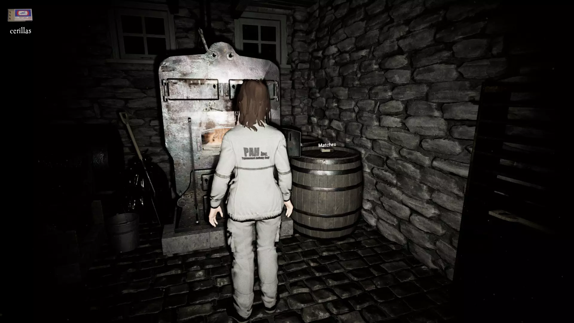 你需要下到锅炉室去自焚。如果你去的时候没有火,那一定是你的某个同伴把火点燃了。作为玩偶,你不能携带木柴(不过如果你之前已经携带了木柴,它会显示在屏幕上,但不允许你使用)。在这个模式下,更重要的是你要知道火柴盒和木柴的位置。否则你将只能依靠有火柴的人来点火(有四个小盒子)。