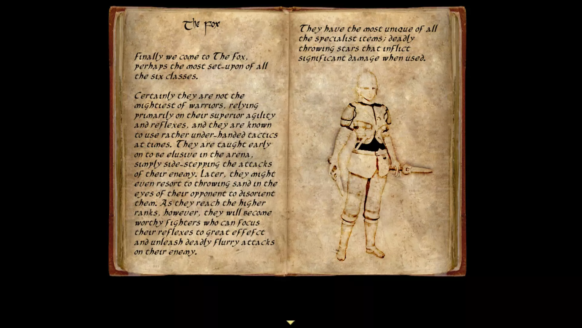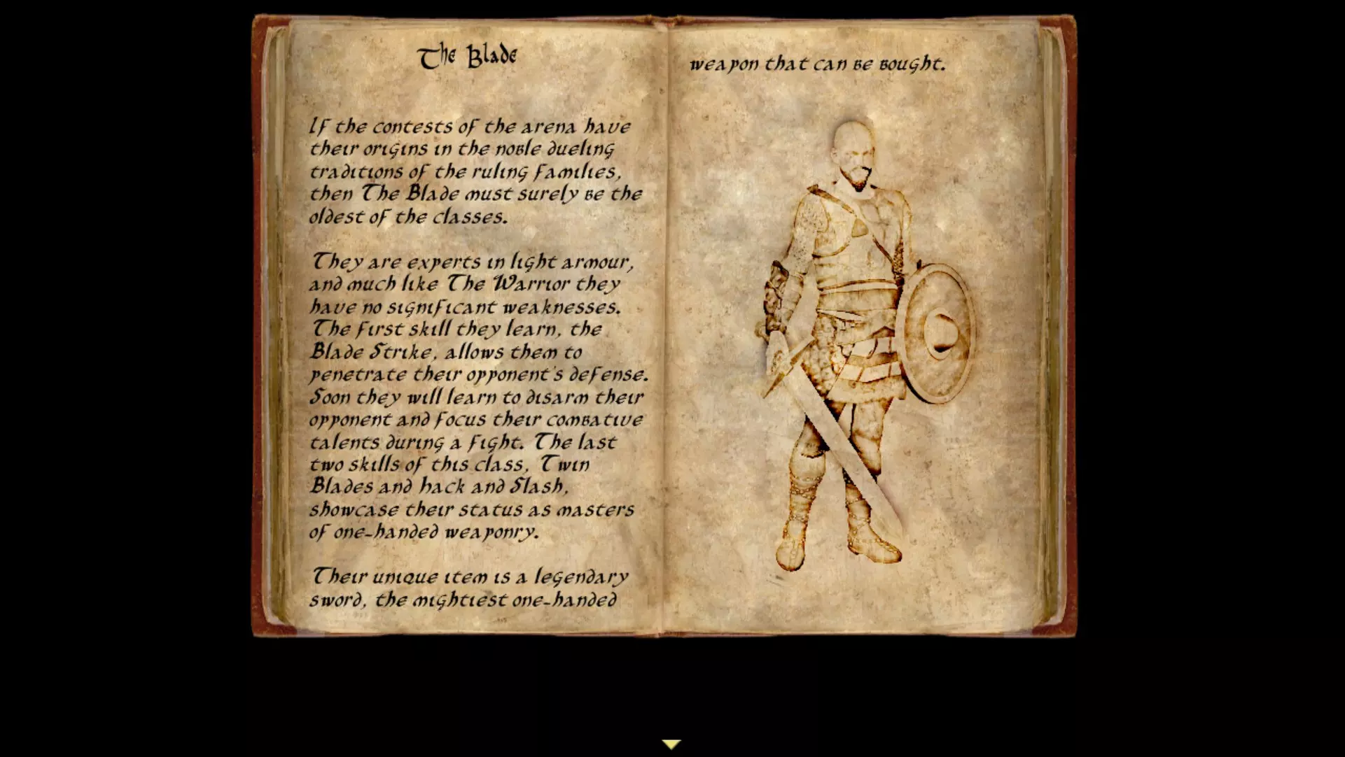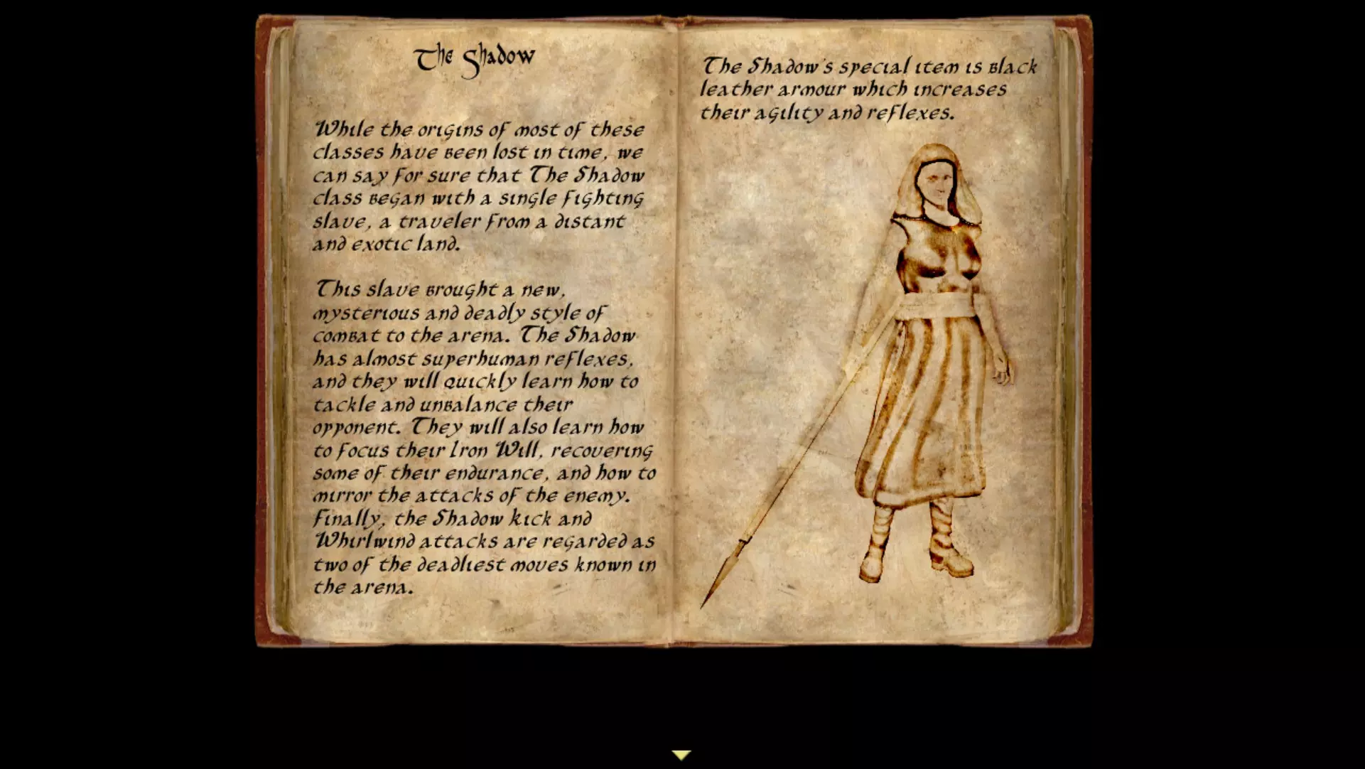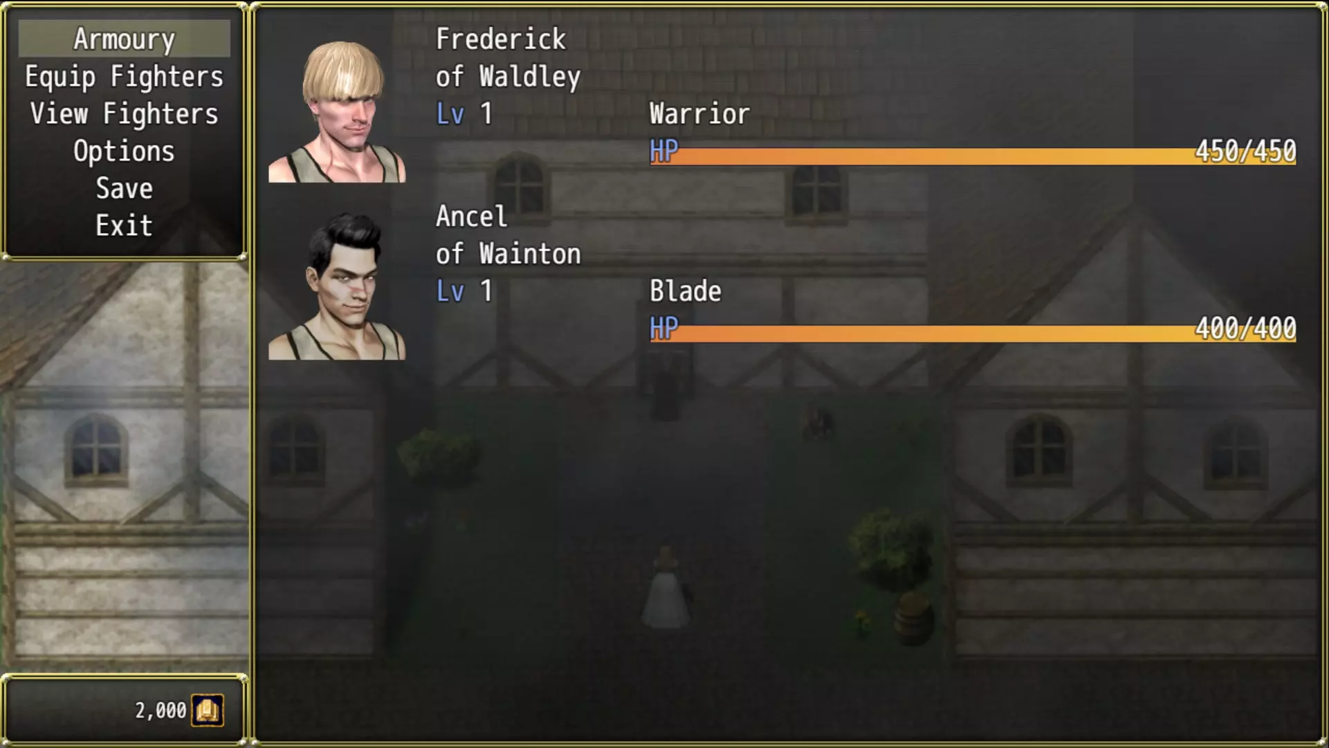从这里你可以退出游戏、返回标题菜单,或者重新开始,直到你对自己的队伍满意为止。 战斗奴隶有六个不同的职业。在这个例子中,我有一个战士和一个 blade。下面会简要介绍每个职业,帮助你选择自己喜欢的两个。 我建议尽早壮大队伍,并且在扩建“地牢”时购买技巧属性。在你填满队伍之前,你的战斗奴隶每周都必须进行多场战斗,所以额外的生命值会很有帮助。 【参观之后】 建议你参加参观,因为它会介绍城镇的基础知识。游戏相当简单,没有太多需要解释的内容。