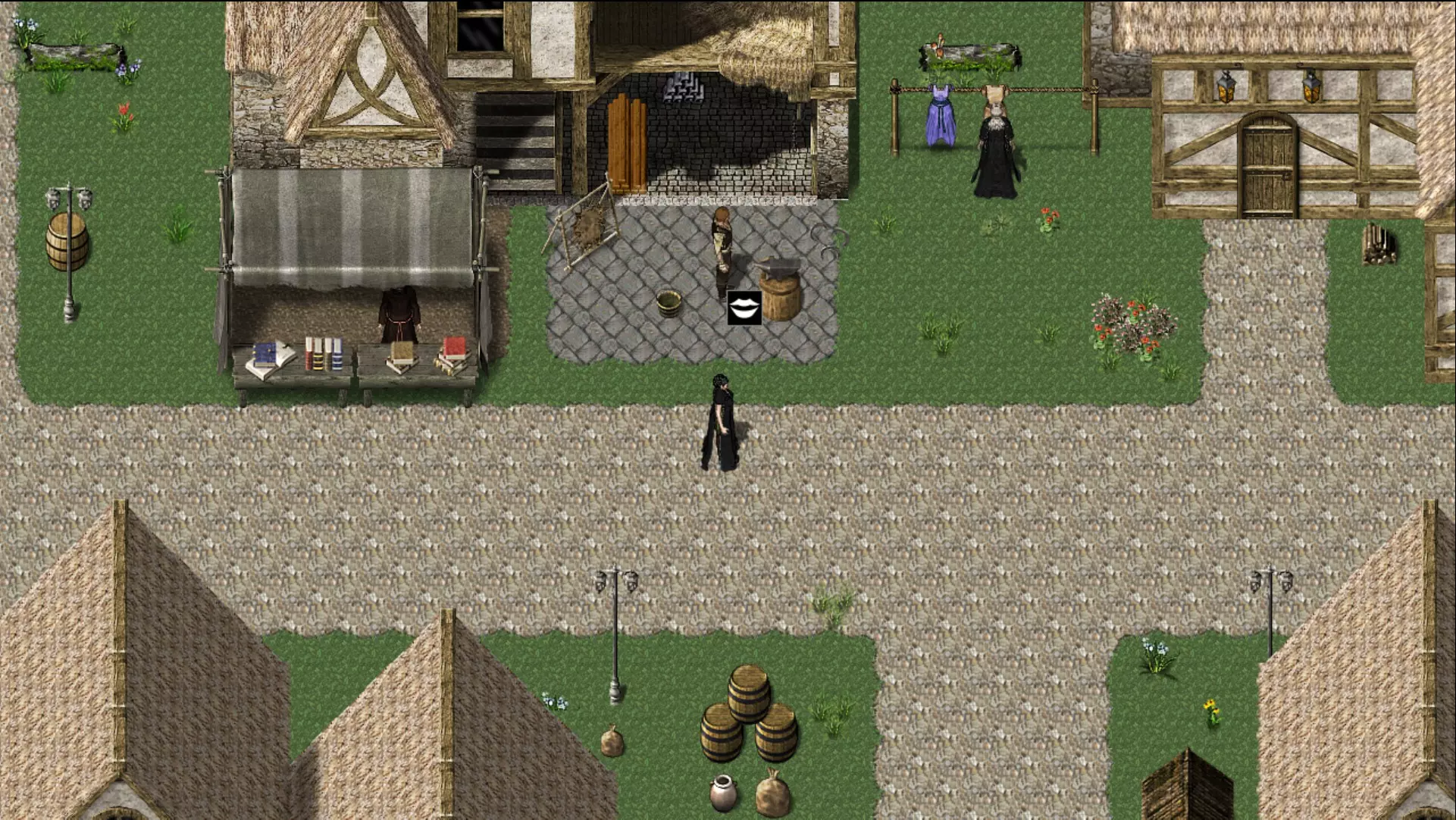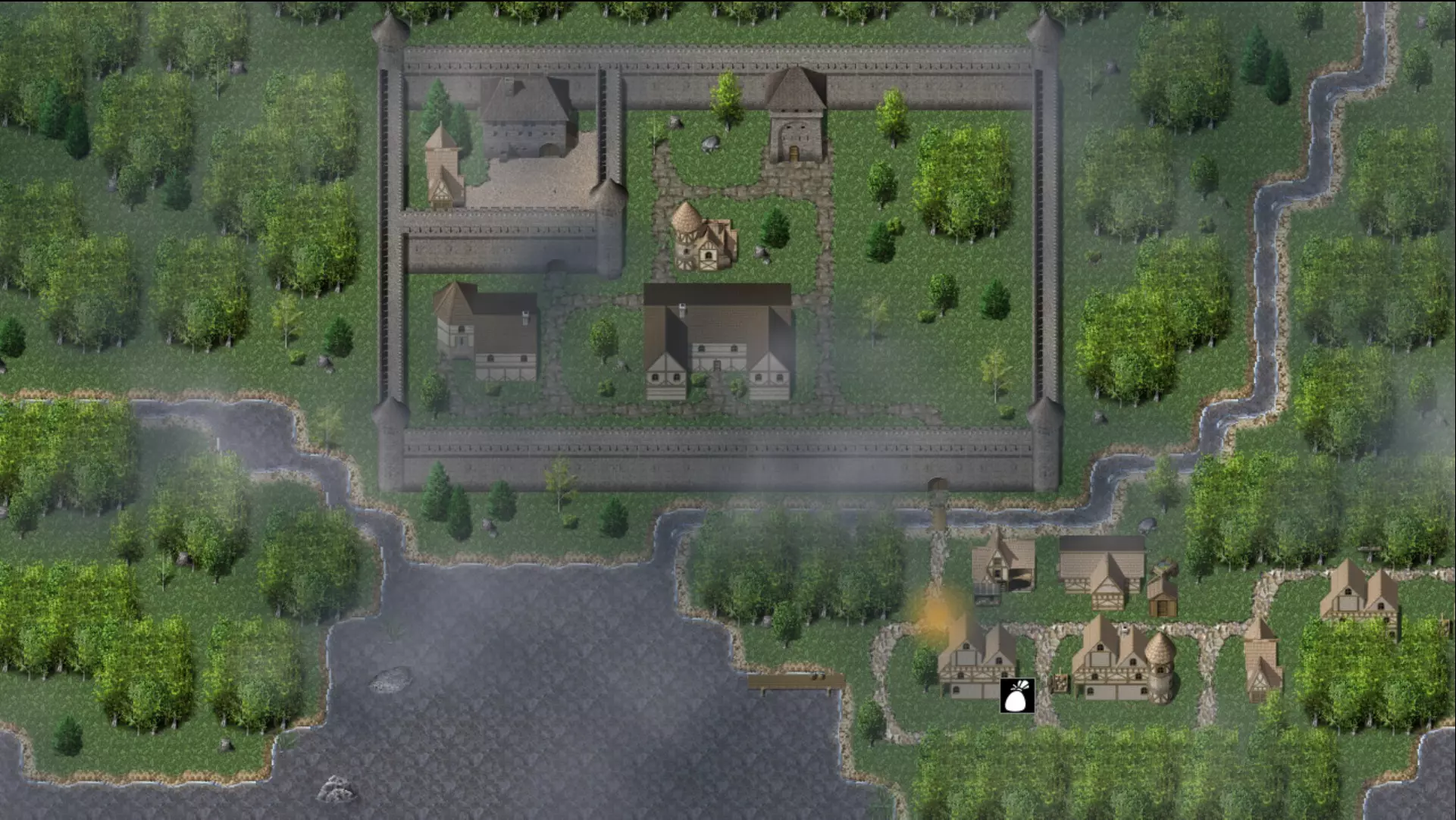 旅行只需点击相应图标即可完成。如这张地图所示,当【背包】图标出现时,点击地图右下角就能前往城镇。在那里,你可以与初始铁匠和先知互动。 先知 *海蒙*