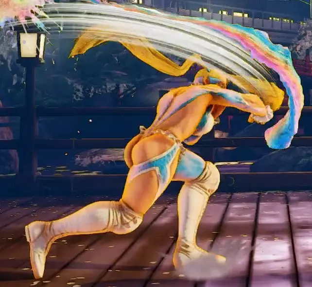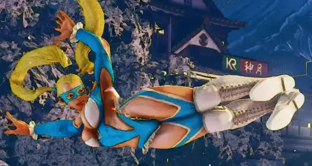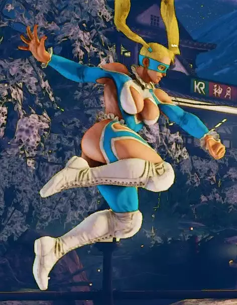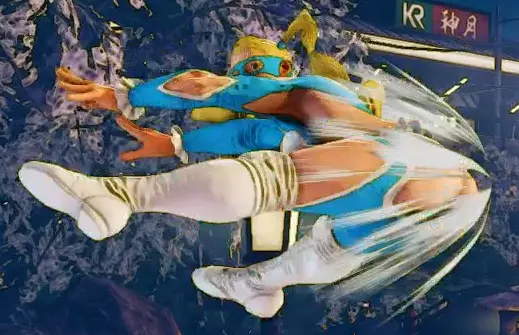 起始 主动恢复 命中 格挡 35 22 0 +4 +2 起始动作非常慢,但如果干净命中则效果极佳(可轻松衔接站立轻脚、站立中拳,再衔接前下前+中拳),或在格挡时(为你提供+2帧有利的择)。此招赋予你极快拉近与对手距离的能力,但代价是动作前摇极大,因为她会先蹲下再向前突进。很多人喜欢用这招,但要记住,反应快的对手很容易对策这招,他们只需垂直起跳后落下即可惩罚你。使用时需格外小心,尤其是在离线对战中,对手有更多时间反应。 此飞踢也可穿过火球,但时机把握较难。她在23-38帧期间被判定为空中状态,并在26-39帧期间拥有下半身对飞行道具的无敌判定。普通与特殊招式(2) 蹲轻拳
