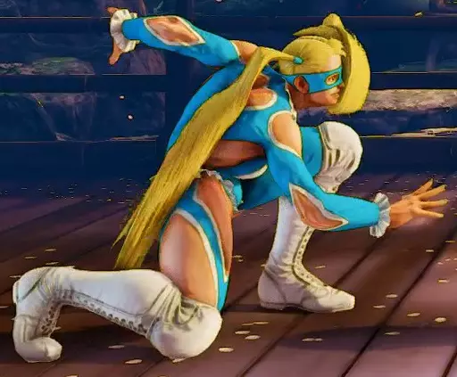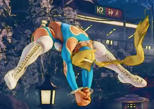 启动 激活恢复 击中时 格挡时 16--击倒- 这是一个棘手的招式,如果谨慎使用绝对有效。只能从跳跃顶点到跳跃剩余过程约75%的阶段使用,这意味着无法在上升过程中使用,且如果离地面太近也无法使出。 此招式通常有三种用途: 1. 诱骗上勾拳(如波动拳)- 有预判地向前跳跃,并在对手上勾拳范围外使出俯冲轰炸。如果隆或肯上钩,他们就会起跳,而你此时已经落地,可以进行一套免费连击。 2. 交叉压制对手 - 在击倒对手后或近距离突然跳跃时,你可以制造左右格挡的局面,如果对手在你下落时猜错方向,你就能造成击倒和伤害。 3.投射物应对 - 米卡拥有蹲重脚、蓄力站重脚和俯冲轰炸来躲避和穿梭于火球之间。蹲重脚相当慢,如果对手太近,很难凭反应使出。站重脚的前摇也很明显,要让它穿过火球,需要对手在你已经开始蓄力时扔出火球(对火球做出反应再开始蓄力太慢了)。这使得俯冲轰炸成为一种不错的近身方式,尤其是在全屏距离时。但仍需小心,有些角色可以从远处惩罚你(纳什的 teleport、达尔西姆的 Teleport 等) 淑女米卡 + 重拳