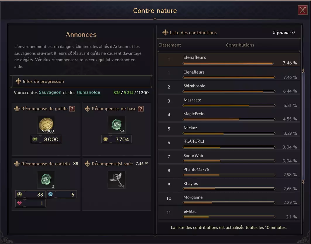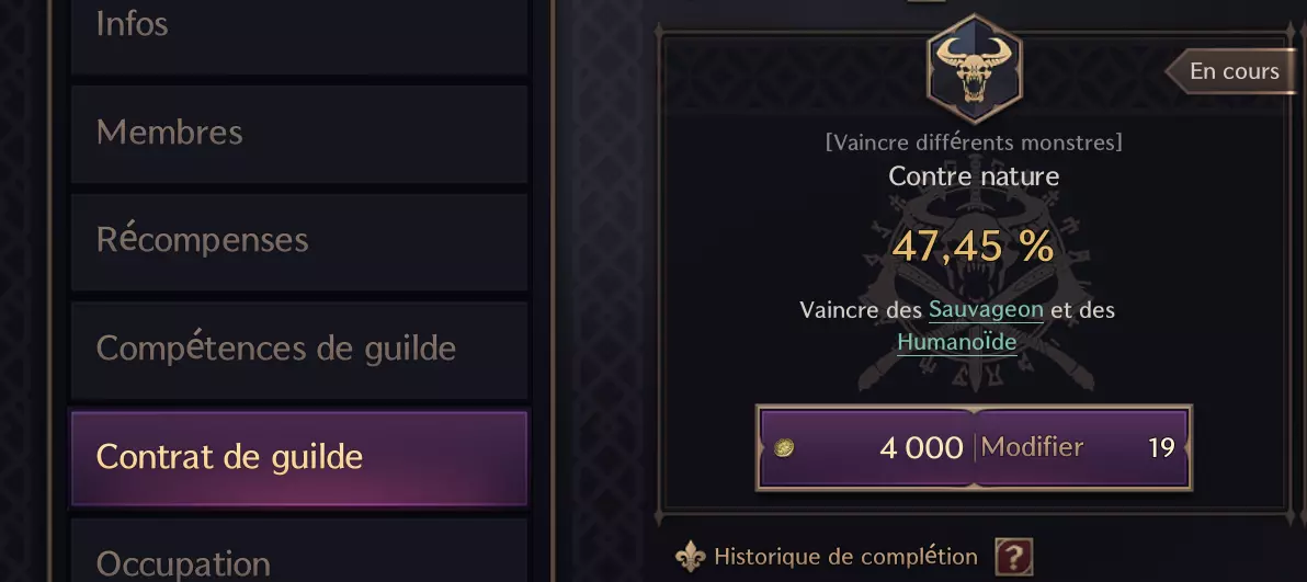 以下是在公会中找到公会合约的位置,以及点击合约查看个人参与情况时会发生的内容: