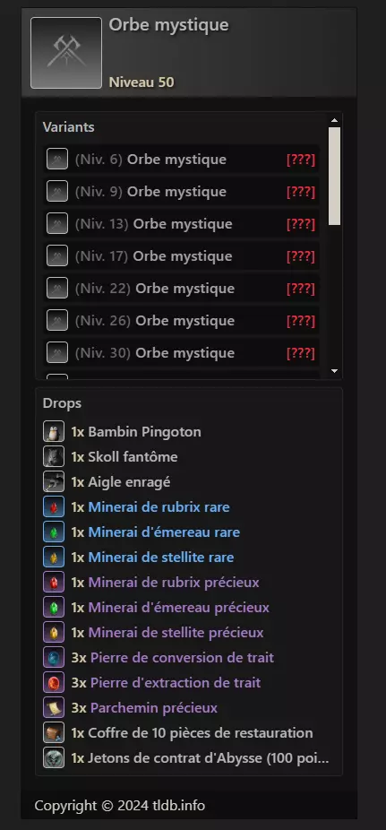 当前神秘宝珠的掉落表如下: