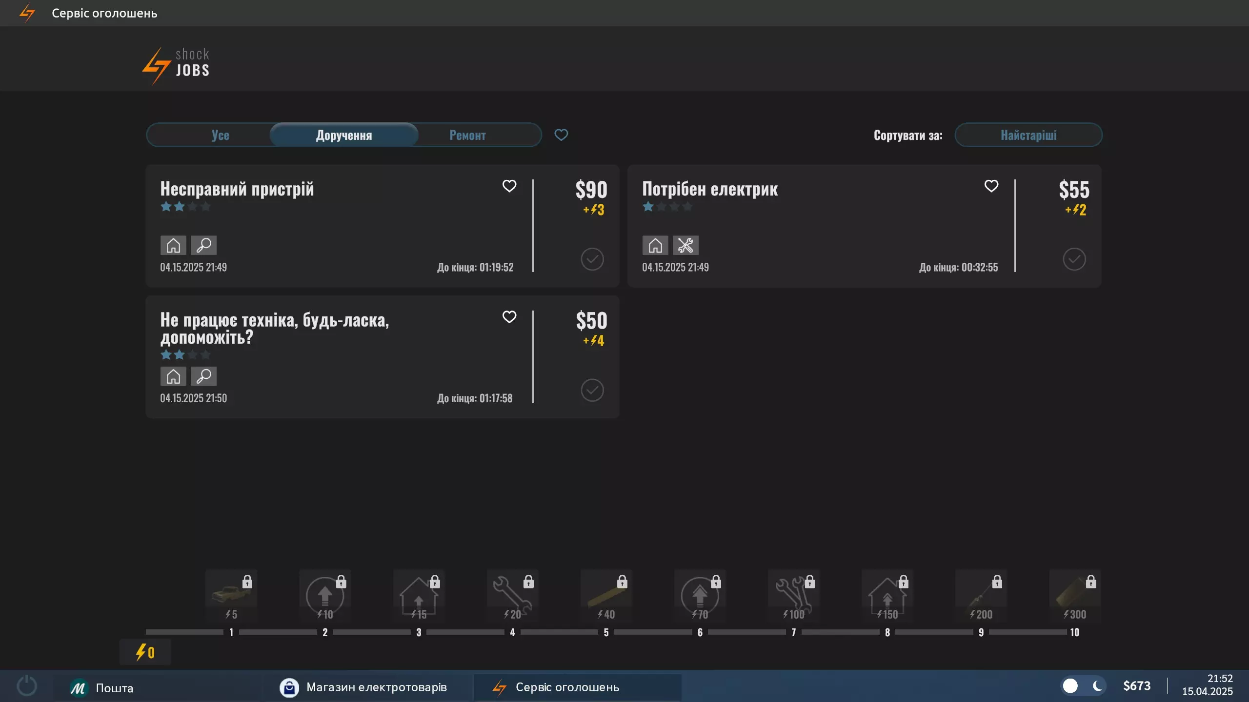 由“Кавунові переклади”制作的乌克兰语本地化补丁 《电工模拟器》乌克兰语本地化 - 翻译基于英语版本。 - 本地化补丁将替换游戏内英语 2025年5月6日更新 - 翻译了DLC【电工模拟器 - 智能设备】 - 本地化补丁适用于无DLC版本及包含DLC的游戏版本 2025年4月21日更新 - 翻译了游戏本体。 - 本地化补丁仅适用于官方版本。目前无法验证该乌克兰语本地化补丁是否适用于其他平台。 安装步骤: 1. 下载相关文件 2. 将文件解压到游戏目录并替换文件,例如R:SteamLibrarysteamappscommonElectrician SimulatorElectrician_Data 3. 开始游戏!