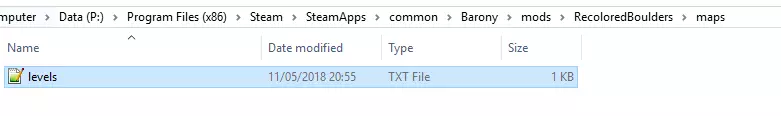 所有新的模组目录在maps/文件夹中都包含一个levels.txt文件。由于我们的模组不使用自定义地图文件,因此需要删除该文件。