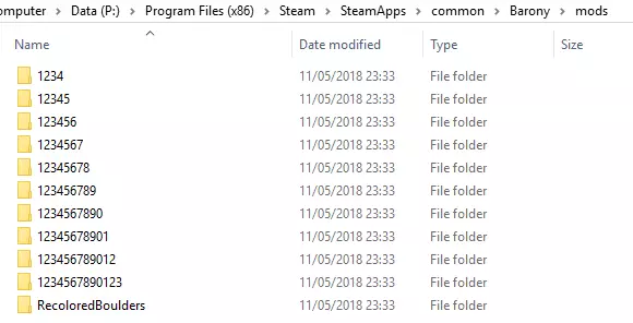 模型文件位置 现在导航至《巴罗尼》的Steam安装目录。Windows系统的安装路径通常类似C: Program Files (x86) Steam SteamApps common Barony。你也可以通过以下方式找到该信息:在Steam库中右键点击《巴罗尼》,选择属性,在【本地文件】选项卡下有一个【浏览本地文件】按钮,点击后会在你的操作系统文件资源管理器中打开安装目录。 如果打开此处的mods文件夹,你会看到我们的新文件夹RecoloredBoulders。