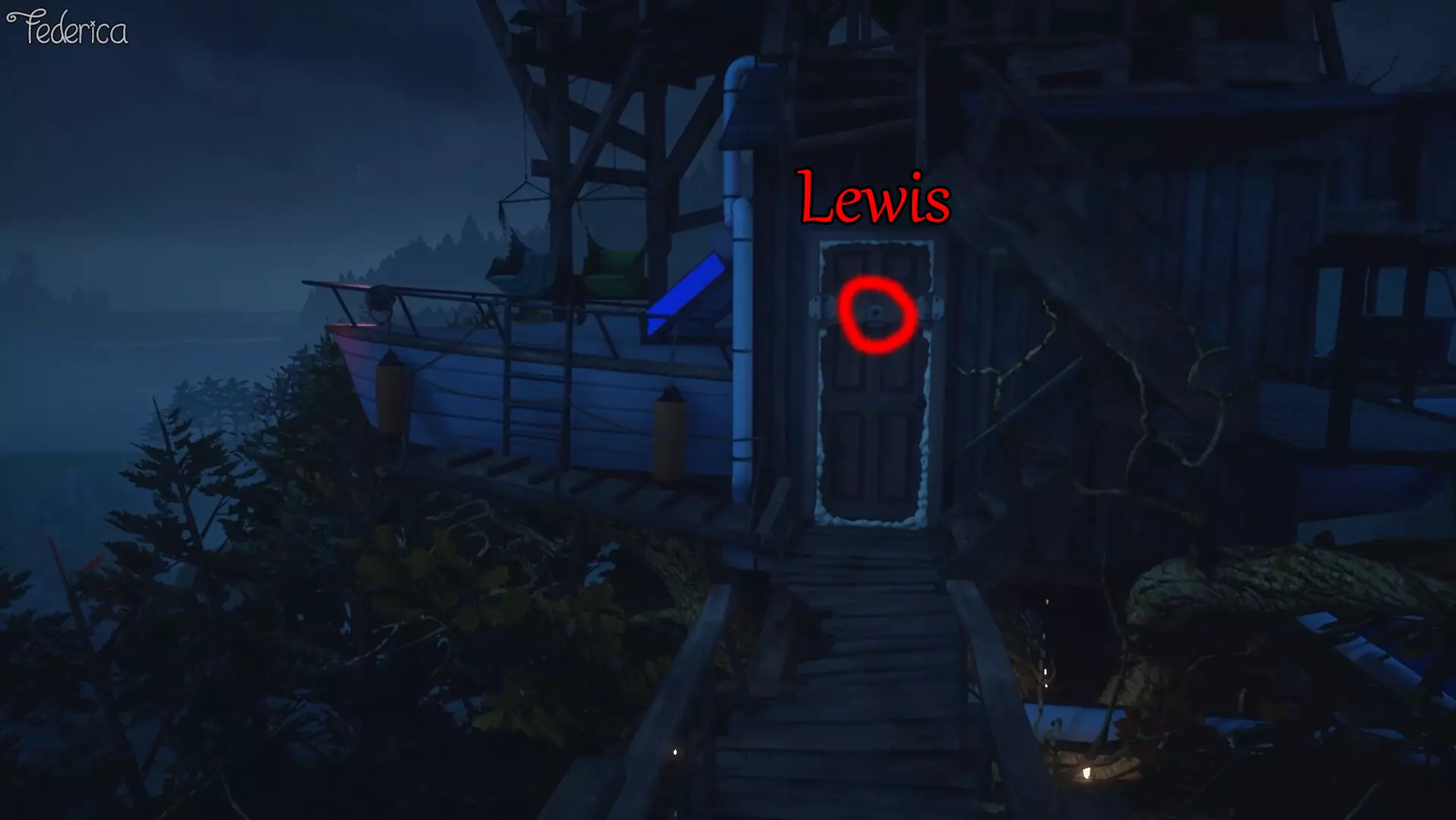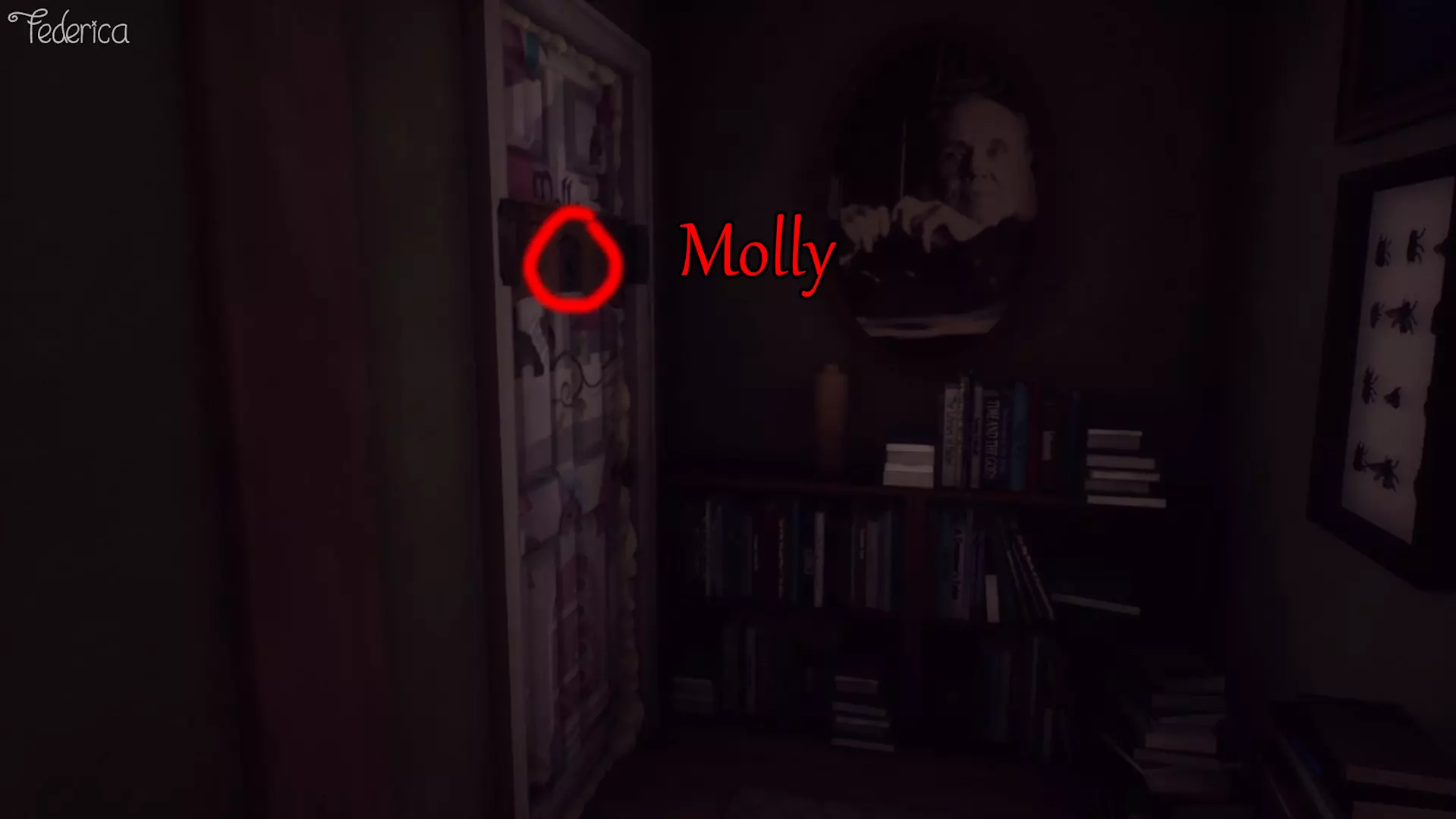 6) 对获取成就有帮助 - MOLLY 还是在一楼,我们找到莫莉房间的门,查看门上的猫眼来听取伊迪丝的评论。