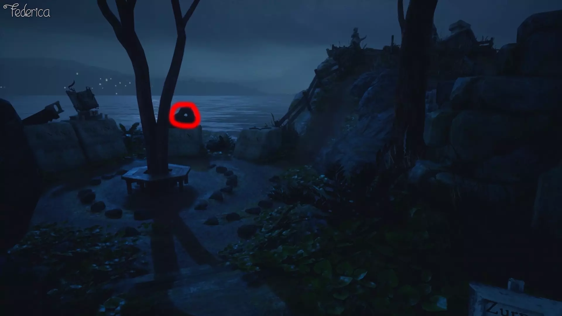 【与成就无关 - 沃尔特之墓】 离开动物墓地后,我们可以注意到沃尔特之墓上有一个窥视孔,通过它可以听到伊迪丝的评论。