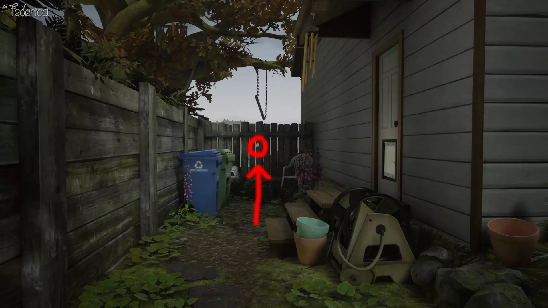【不影响成就】围栏 在从车库门进入房子之前,可以注意到围栏上有一个洞,查看它可以听到伊迪丝的评论。
