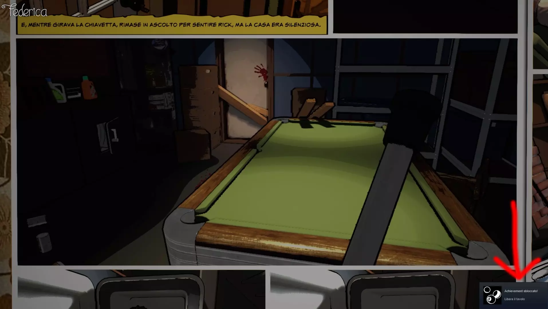 在芭芭拉的故事中,我们下到地下室会找到一个撬棍,面前则有一张台球桌。此成就的目标是将所有台球从桌上击落或打入球袋。为确保成功,除了台球外,我们还可以将桌上所有物品都从桌上击落。