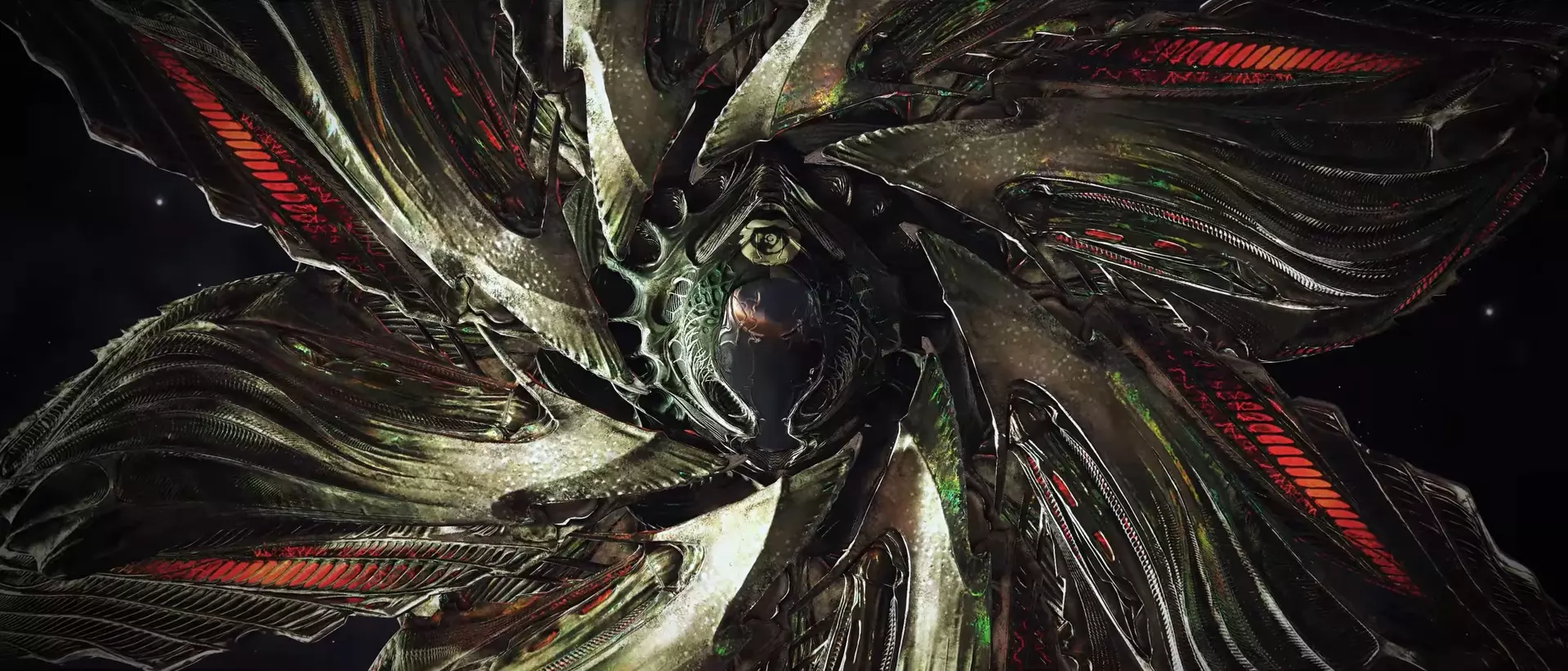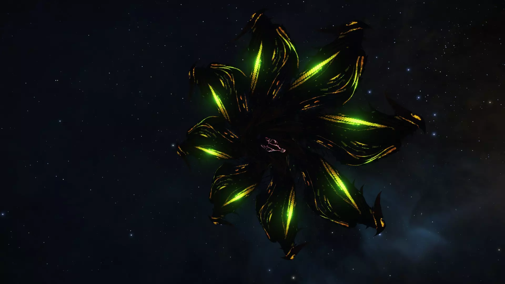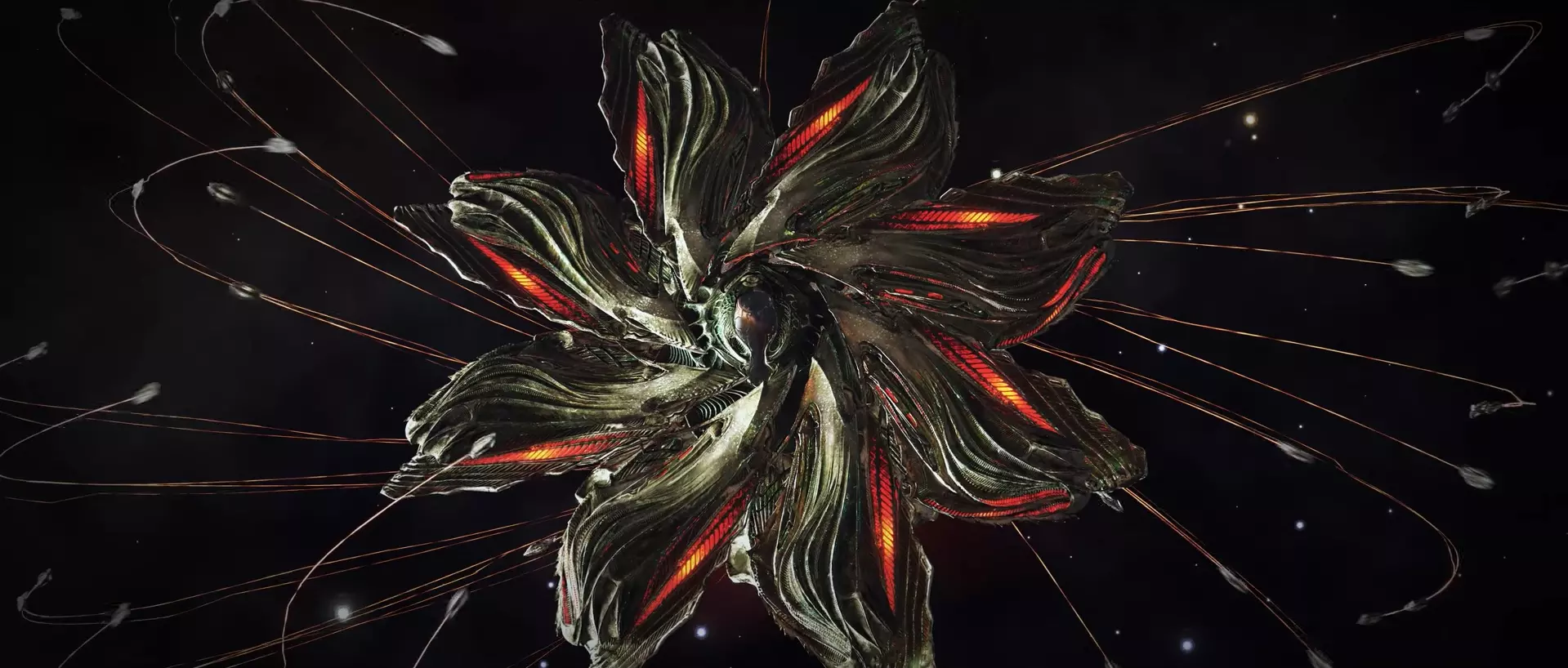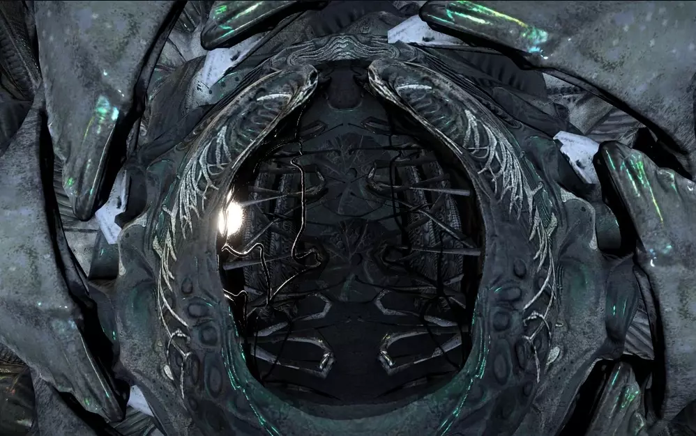 拦截者采用统一的有机设计:舰船的【驾驶舱】位于舰首,推进装置位于舰尾,这与人类的星际飞船特征一致;舰船的中央结构呈垂直方向,具有八角形对称轴。八个大型【叶片】环绕驾驶舱,并且能够伸缩。同样,八个蓝色花瓣环绕着移动装置;它们在船只移动时展开,静止时则收缩。捕手没有机械子系统,而是拥有名为【塔尔戈伊德之心】的有机模块,能够修复其受损的机体。捕手会发出各种声音和颜色,这可能是它们的一种交流方式。每个拦截舰舱室上方都能看到符号。尽管这些符号或文字的含义未知,但已记录了多种组合形式,据信每种组合可能表示舰船所执行的特定任务,或是其所属塔戈伊多夫阶层内的等级划分。“瓦西里斯克”拦截舰上有一些“独眼巨人”拦截舰所没有的符号。对拦截舰驾驶舱的详细检查显示,内部有两个圆形舱口状的开口,但看不到飞行员或控制面板。在拦截舰的残骸中从未发现过逃生舱。这可能意味着拦截舰是远程操控的,甚至是自主运行的,而它们的有机设计表明,如果情况确实如此,它们可能是由塔戈伊德创造的人工设计生物。21.2.关于塔戈伊达人——与塔戈伊达人的战争及舰船建造