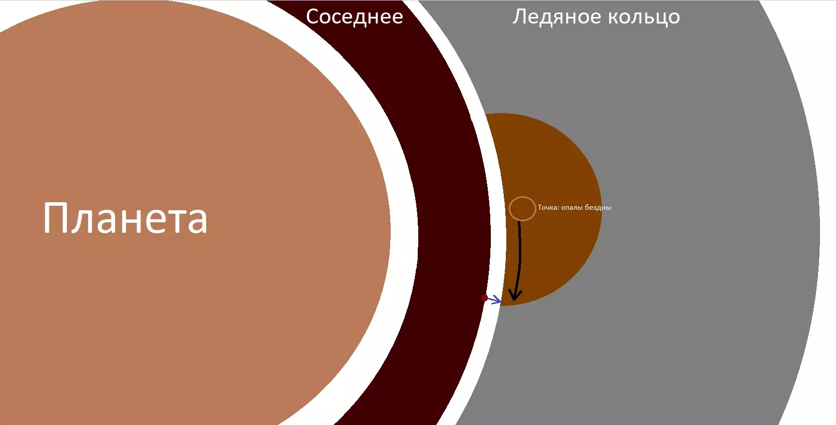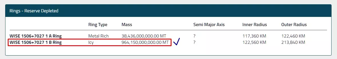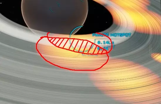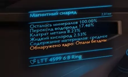 其原理如下(见图):进入岩石环边缘后——该岩石环与相邻冰环中聚集的深渊蛋白石相接触——你会进入其中并飞向相邻的冰环。此时,相邻冰环的小行星处于移动状态。当靠近相邻冰环时,所有含贵金属核心的小行星会留在环内,而其他小行星则会消失。这就是关键所在。如果以前你需要用常规方法寻找特定小行星,现在只需在其他小行星中找到带有欧泊石的,这些小行星的核心由其他矿石构成。便利性体现在:节省寻找所需小行星的时间;由于每平方兆米内小行星数量较少,开发更便捷;爆炸后的小行星碎片会消失,开发更便捷;冰环区域没有海盗;存在资源点。这里的情况和普通的矿石开采类似,但有两个要点:寻找时,质量一栏中必须有两行内容:冰环和其他的什么东西。您需要确保蛋白石矿脉与相邻的环相交,就像上面图片中那样!进入环内