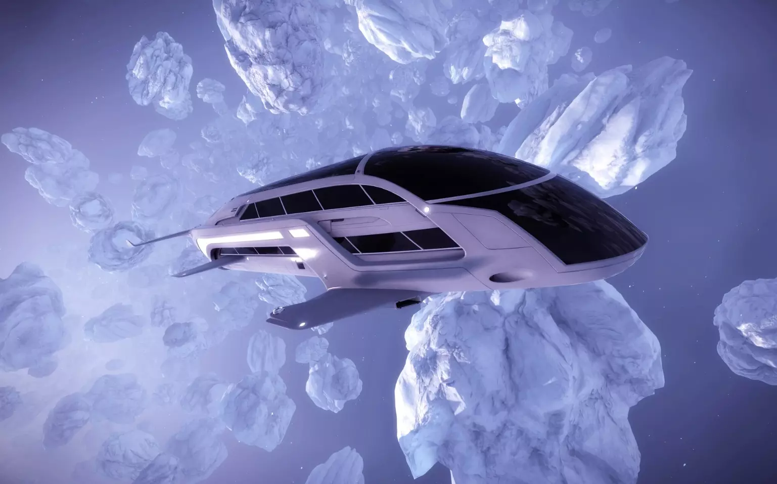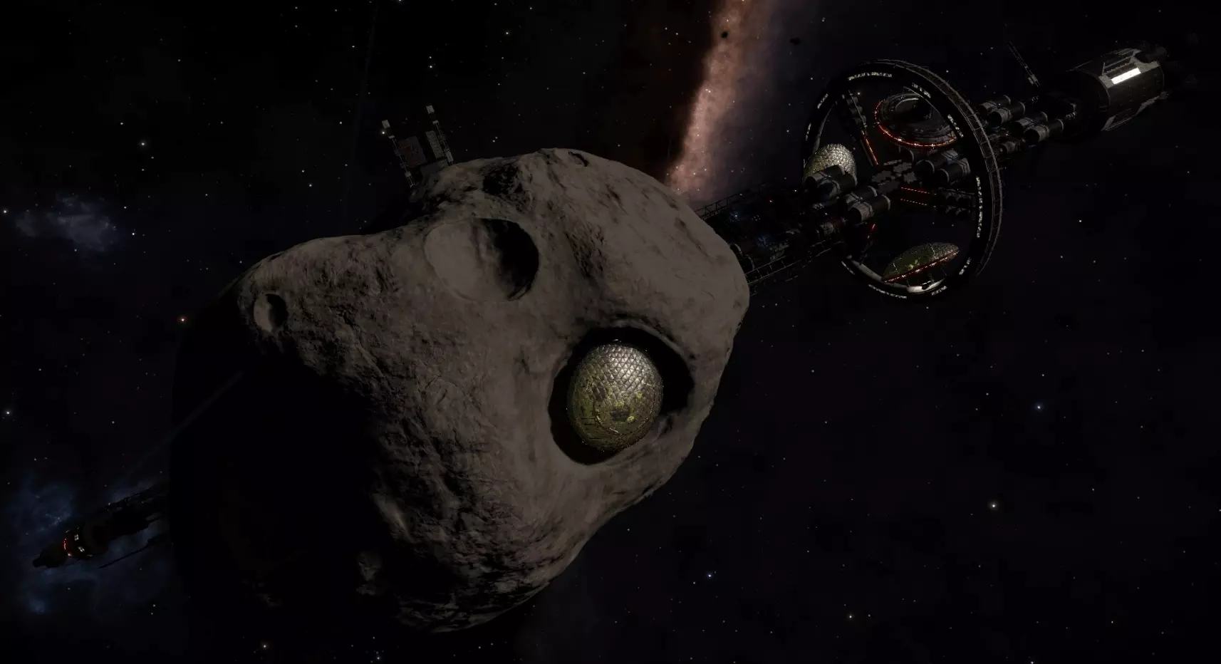 采矿船 为建造该飞船,需在巨型小行星中开凿隧道系统,以便在其中植入发动机和飞船底座。该飞船用于开采和运输小行星中的矿石。