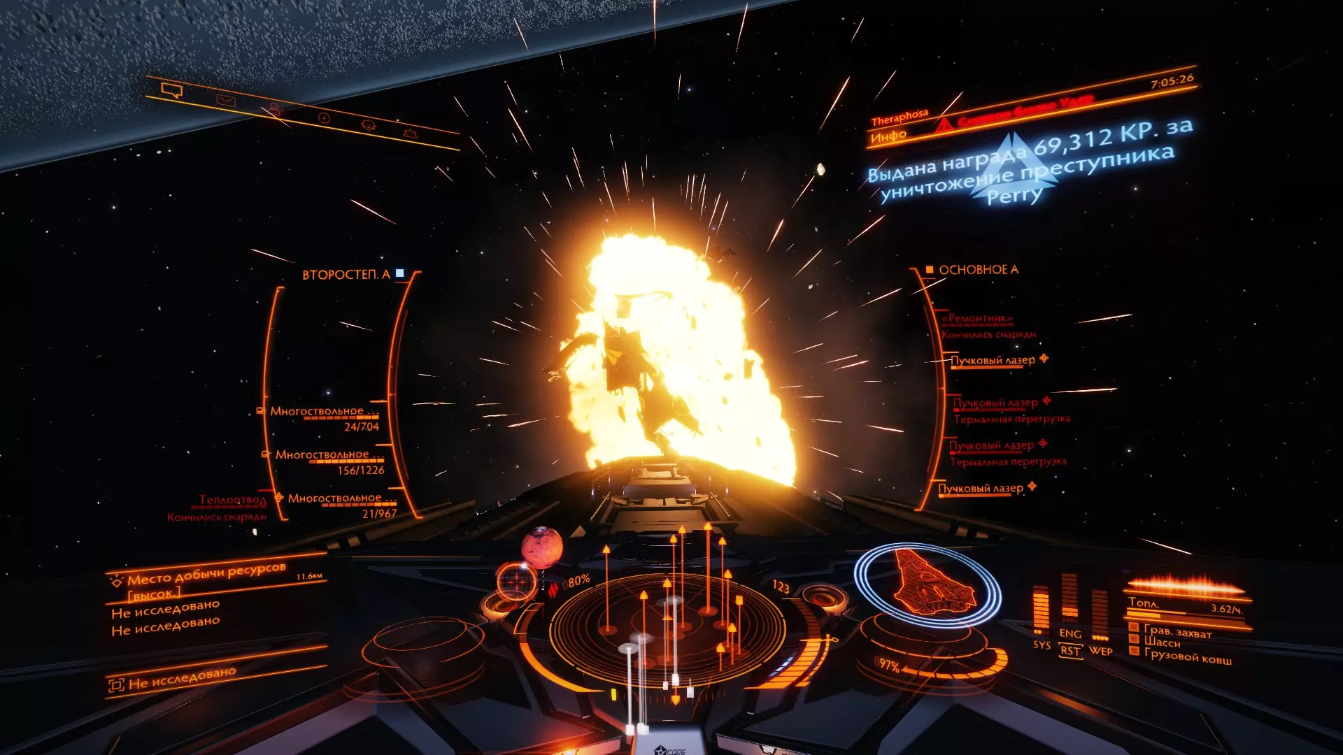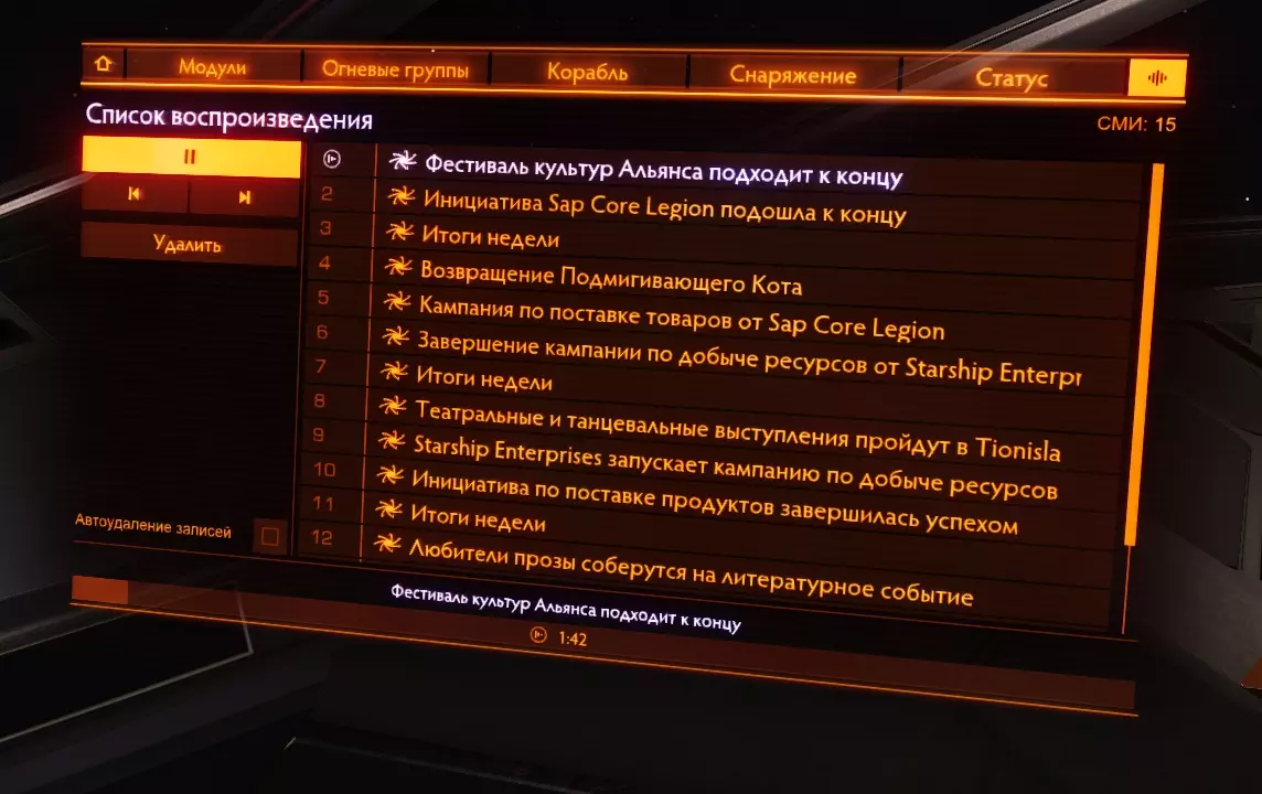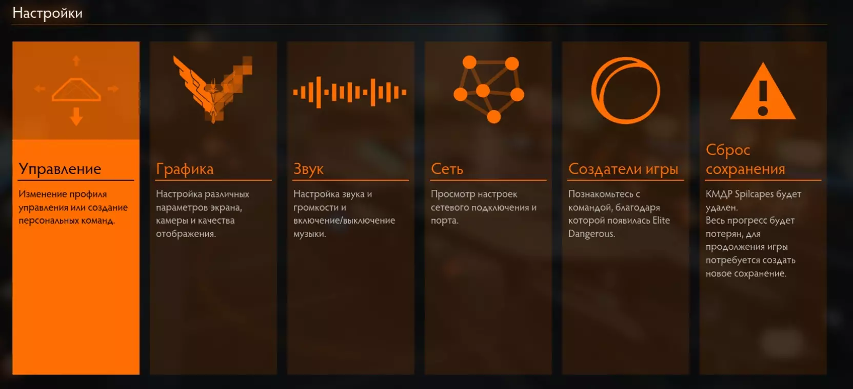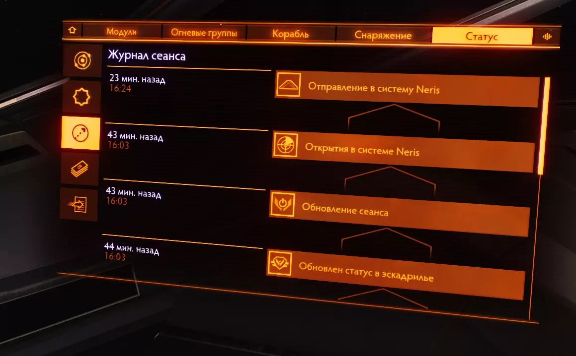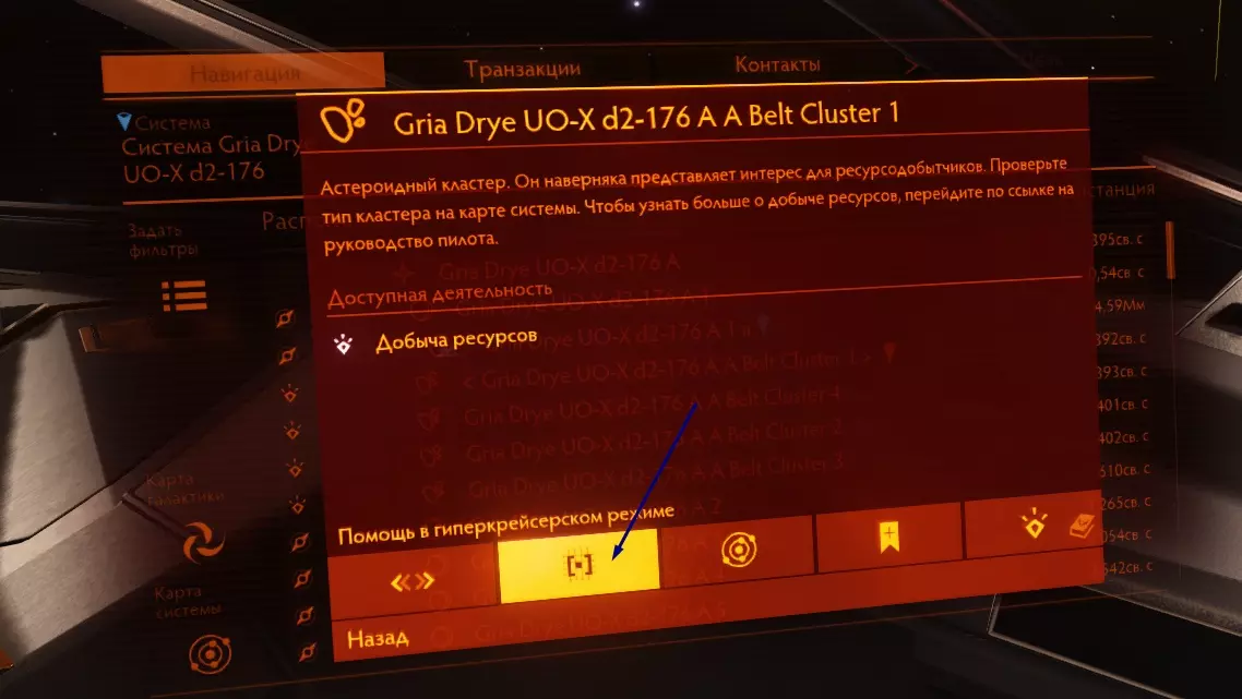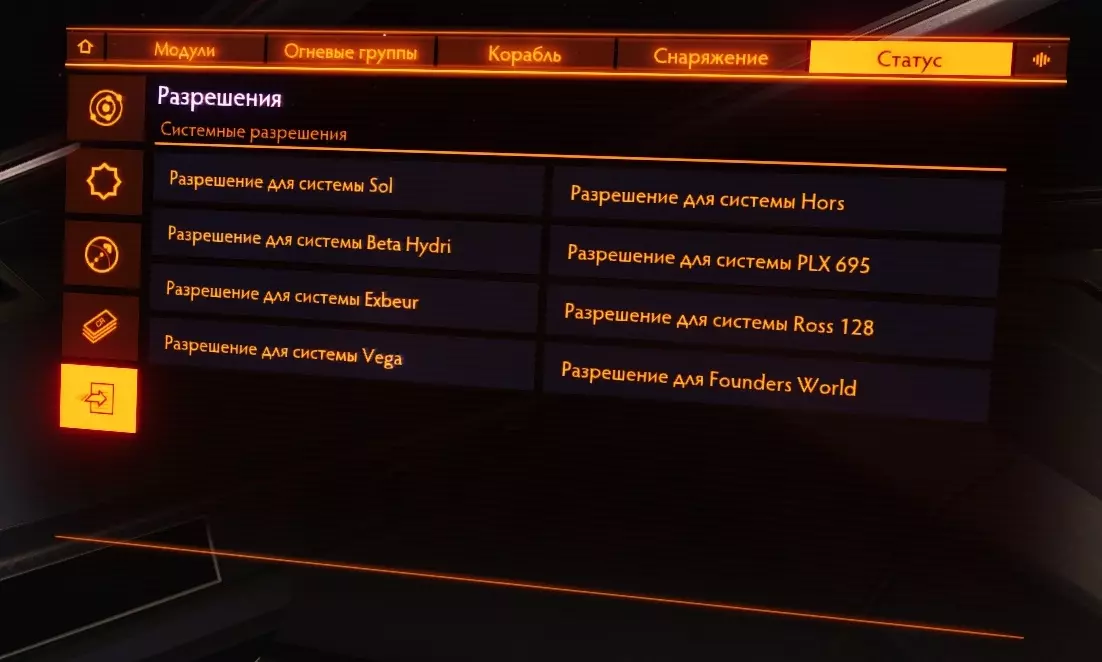 УправлениеСамый важный и сложный пункт настроек. Поскольку управление в этой игре непростое, то настроек много и они разделены по категориям, которые не совсем корректно переведены на русский язык. Ниже я расскажу поподробнее о самых важных пунктах. Движения мыши - чувствительность мыши По стандарту чувствительность мыши настраивайте под себя. Полет: тяга - Установить скорость 0% Установите на X и запомните эту очень полезную функцию. Она позволит моментально сбросить тягу. Охлаждение - использовать теплоотвод Советую переназначить на среднюю кнопку мыши, а свободный обзор на боковую (чтобы переназначить свободный обзор, перейдите во вкладку "Переключение режимов движения - обзор от 1-го лица"). А если боковых нет, то теплоотвод будет использовать не так удобно, но возможно. О теплоотводе мы поговорим в разделе "Модули", тут я скажу только то, что эта функция будет вам пригождаться очень часто и желательно, чтобы она была у вас под рукой. Разное - использовать щитовую ячейку, применить разб. дипольных отражателей Тут похожая на теплоотвод история. Рекомендую назначить на V, C соответственно. Переключение режимов - посмотреть: панели Все панели переназначьте на "Не действует". Это нужно для того, чтобы можно было оглядываться в корабле без лишнего открытия панелей. Напомню, что панели открываются на клавиши 1, 2, 3, 4. ГрафикаСаму графику переназначьте под свой компьютер. Экран - полный экран Без границ - позволяет использовать множество приложений для elite dangerous, на производительность не влияет. Поле обзора 100% - тут все стандартно. Незначительно влияет на производительность ЗвукТут все стандартно. Пока не трогаем. Если во время игры вы слушаете музыку, то игровую советую выключить. СетьНичего не трогаем Создатели игрыДля тех, кто хочет посмотреть титры и послушать хорошую музыку :) Сброс сохраненияЕсли вы только начали играть, но выбрали не тот корабль, то советую сделать сброс сохранения. *29. Добыча компонентов Добыча компонентов для прокачки у инженеров является самой долгой и сложной в понимании частью. Независимо от того, как вы будете добывать ресурсы, я советую сначала добыть все ресурсы для всех чертежей на все нужные вам модули, а уже потом лететь прокачиваться! Что такое релог и почему это обязательная вещь?Что это? Релог - это процесс Elite Dangerous, когда вы выходите из игры в главное меню, а потом снова заходите. Зачем это нужно? Фишка заключается в том, что ресурсы при повторном заходе в игру "перезагружаются" и появляются снова! Таким образом, если вы на каком-нибудь конкретном месте добычи ресурсов, например: в dav's hope, то вы можете бесконечное количество раз выполнять релог и, тем самым, бесконечно получать ресурсы, пока у вас не закончится для них место. При этом, ресурсы все-еще спавнятся рандомно, то-есть они будут каждый раз разные. Нюансы: Если вы находитесь не в конкретном месте, а просто в рандомном месте на планете, то, бывшая богатая ресурсами местность после релога может превратиться в никому не нужную пустыню, потому что разбросанные на планете камни, после релога, полностью респавнятся рандомно по всей поверхности планеты, поэтому будьте аккуратны. Релог не работает при добычи ресурсов в источниках сигналов! Однако, мало кто знает, но работает кое-что другое. Об этом я расскажу в "добычи ресурсов напрямую". Какой способ добычи к