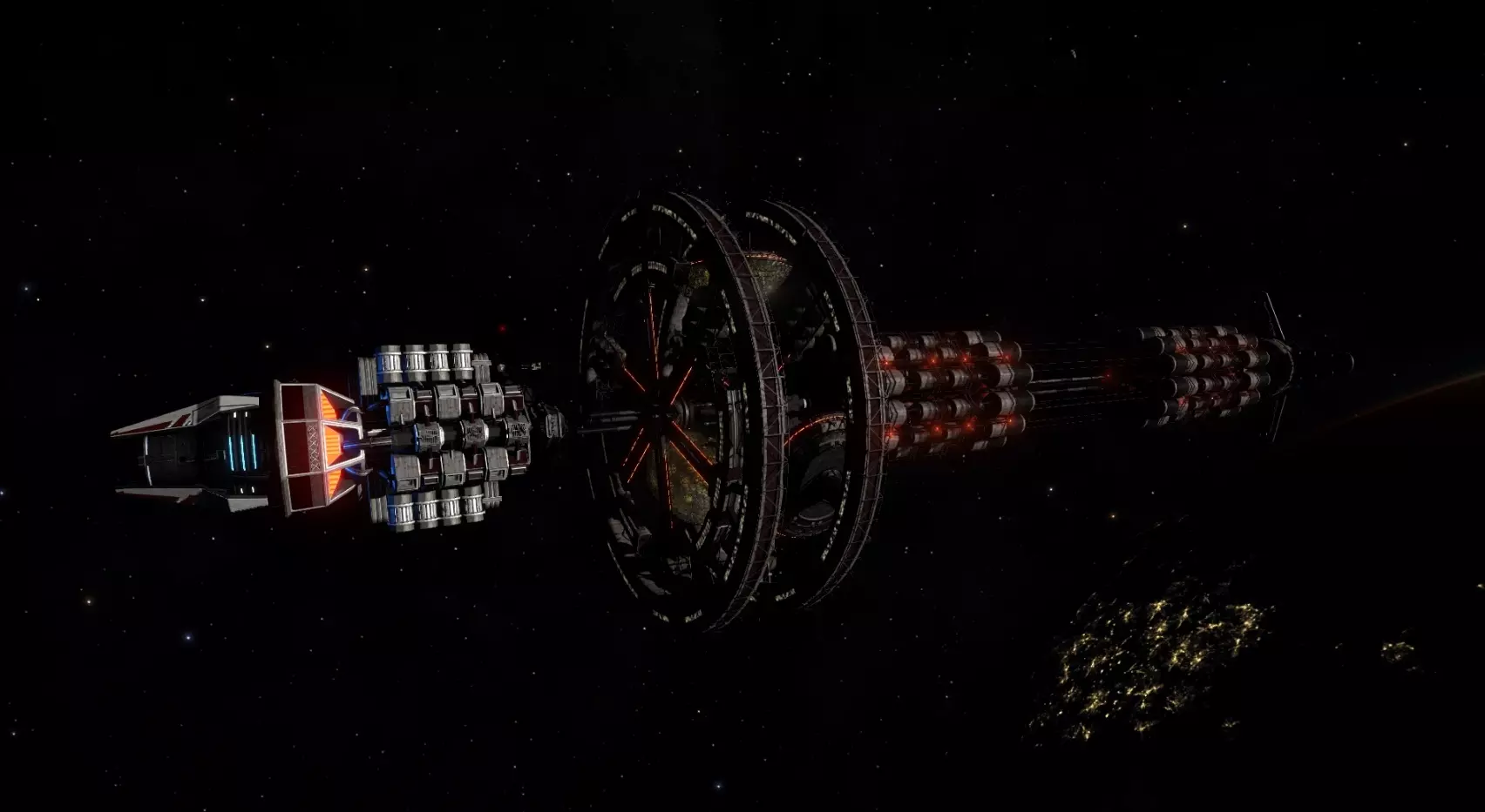 旋转校正 - 更多空间站通过绕自身轴线旋转来维持人工重力。与这类空间站对接时,将启用旋转校正功能,该功能会使飞船的运动与空间站的运动同步。 超空间推力重置 - 当飞船从一颗恒星跳跃到另一颗恒星时,会将推力重置到“超光速巡航模式”下的最小值 - 30公里。简单来说,该功能可在超空间跳跃后自动停止飞船。