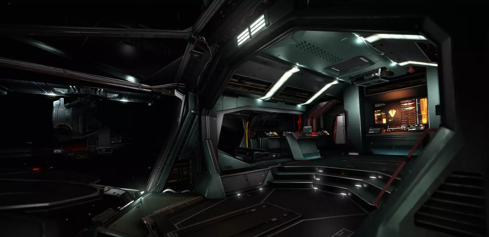 联邦干预舰队是联邦扩大影响力的主要军事手段。该舰队以新型法拉格特级巡洋舰为核心,虽然性能不及威严级拦截舰,但足以发动类似的打击。法拉格特级巡洋舰不仅能搭载多个战斗机中队,还可配备护卫舰群,同时具备部署和支援陆军部队的能力。与华丽的帝国“威严”级不同,法拉格特级战列巡洋舰是一台冷酷实用的杀戮战争机器。密封舱门将内部划分为多个独立隔舱。舰内设有大量扶手、操作面板以及各种军用舰船必备设施。联邦巡洋舰的内部设计绝对不会与帝国舰船混淆。