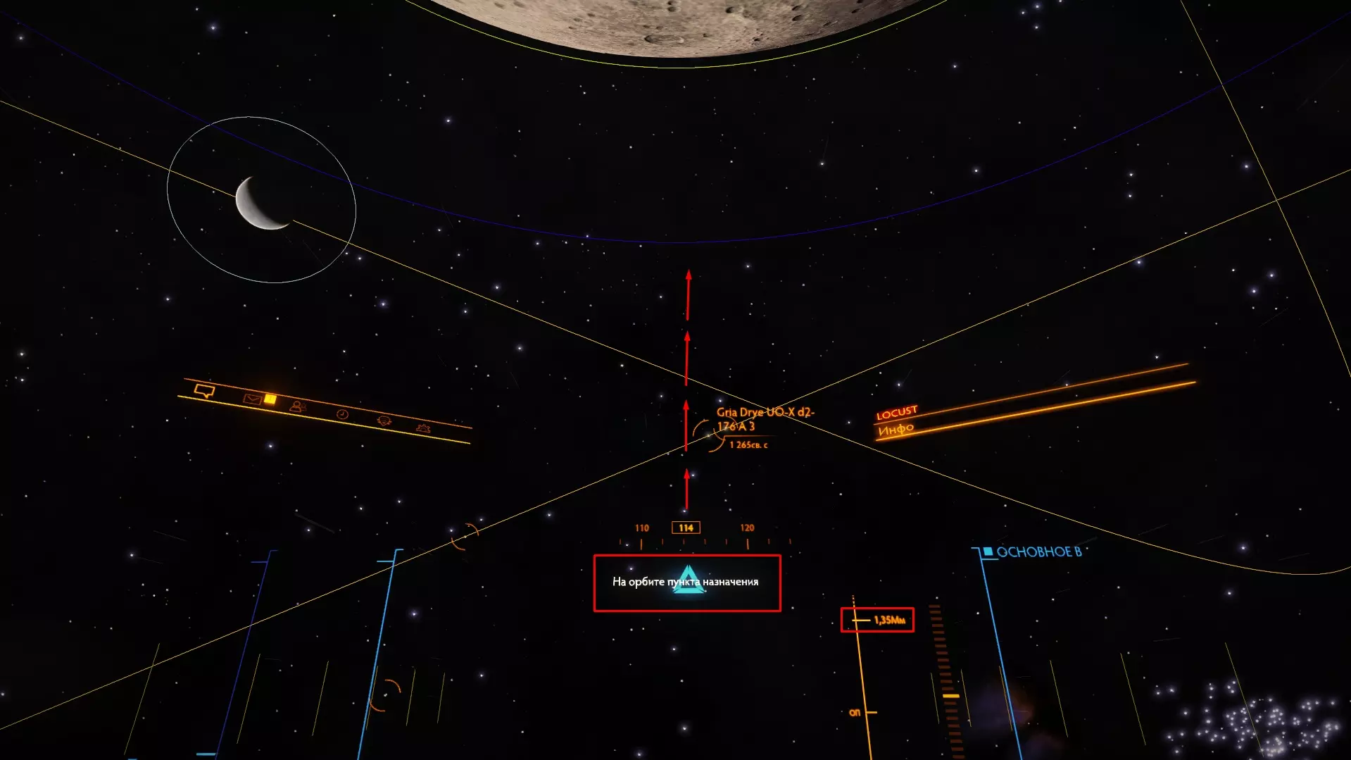 请等待……如果您的目标相对较小(例如太空港或导航信标),当您距离它不到1毫米时,系统会自动将您传送到该目标并进入强制模式。如果您的目标是天体(例如行星),那么您将在其轨道上环绕飞行,直到您决定关闭或停用“超光速巡航辅助”。