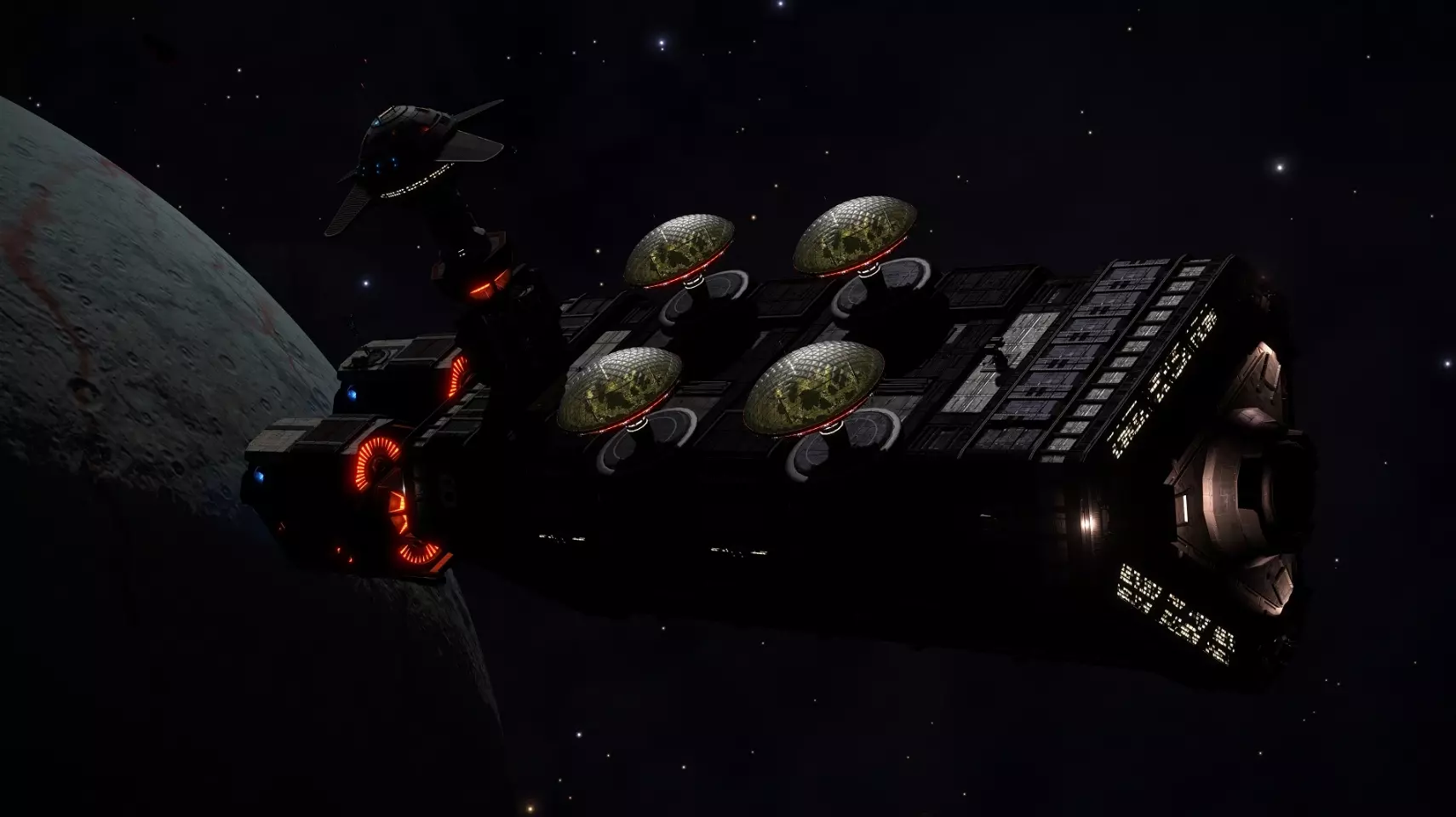 帝国一直特别注重其舰船的奢华、风格与品质。帝国舰队的骄傲——威严级拦截舰,在帝国舰船中尤为突出。帝国主力舰不仅是帝国舰队的军事力量,同时也作为富有的权贵们的使节座舰和游艇。无论是内部还是外部,它们都极尽奢华。你可能已经注意到飞船引擎旁那个巨大的旋转环,正如你可能猜到的,它是为乘客和住客创造人工重力的——让他们在生活中几乎感受不到身处开放宇宙的迹象。与其他飞船相比,帝国战列巡洋舰在环内生活方面极其舒适奢华,这里居住着数千人。 法拉格特级战列巡洋舰